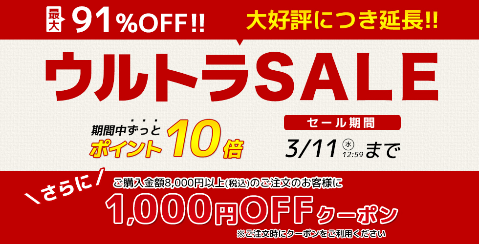 ※3月11日(水)12時59分までにご注文手続きをお済ませ頂きませんと、価格が変更されますのでご注意ください。 ※表示している価格は、割引後の価格となっております。 ※期間中、注文の同梱処理・合算等は行いません。送料はご注文毎に生じますので、予めご了承くださいませ。