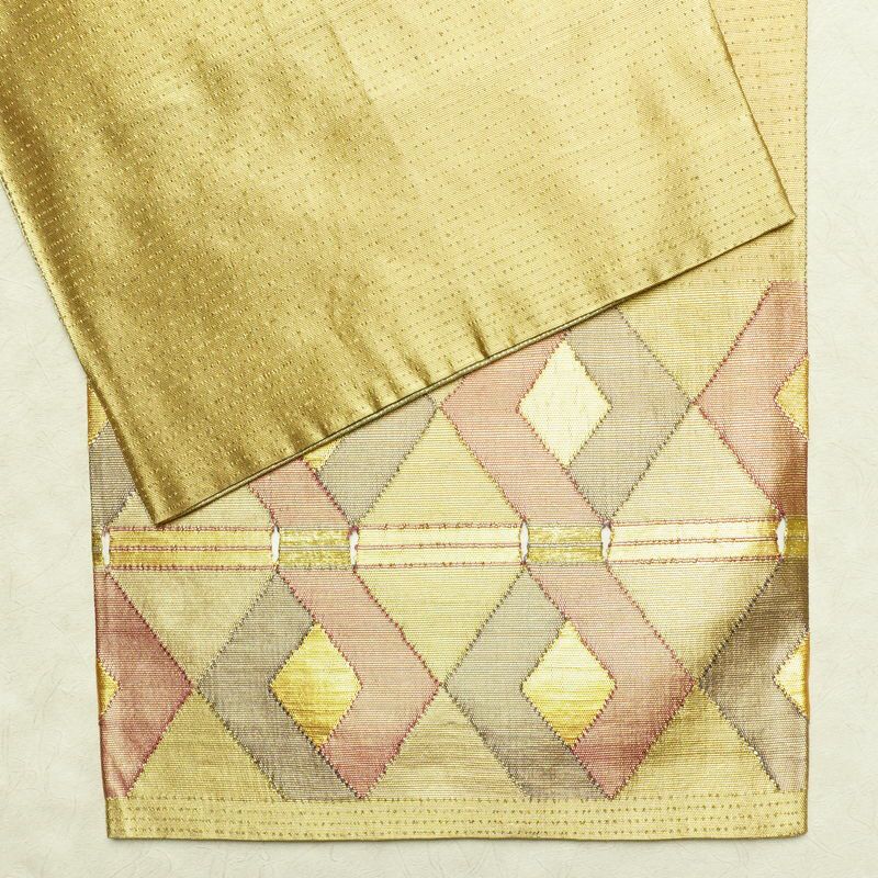 他の画像を見る 0 袋帯 六通柄 フォーマル用 正絹 幾何学柄・抽象柄 箔 帯 黄・黄土色 (2025年2月5日時点での価格) ¥ 12,800 55%OFF ¥ 5,690 税込 カートに入れる お気に入りに登録する