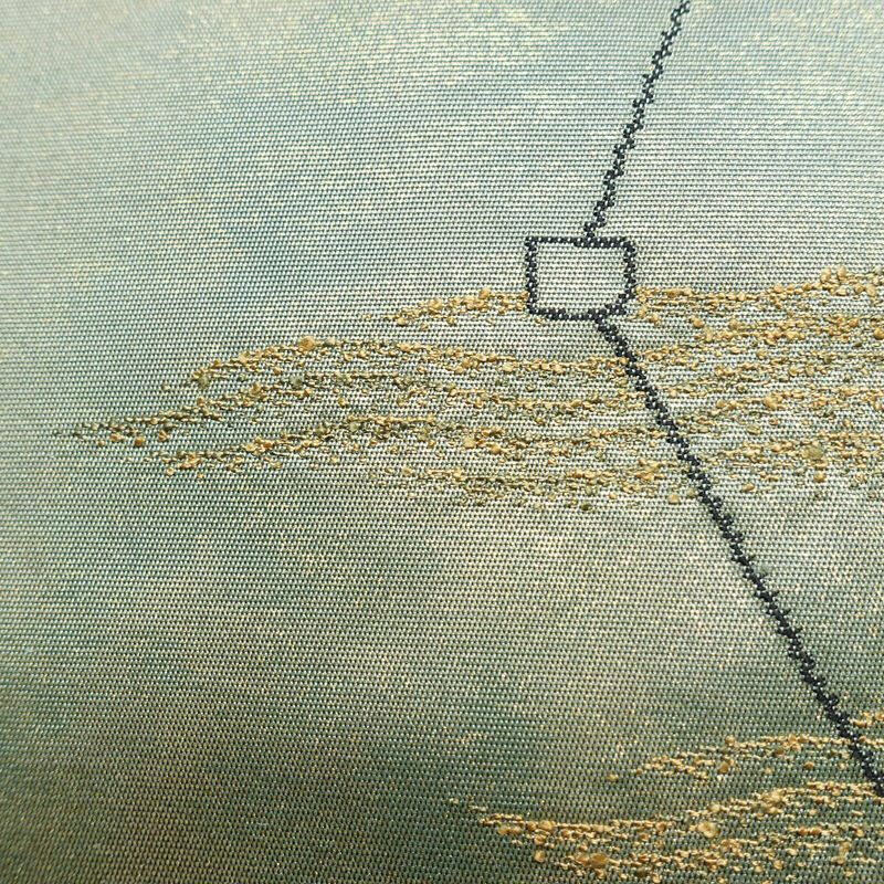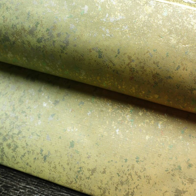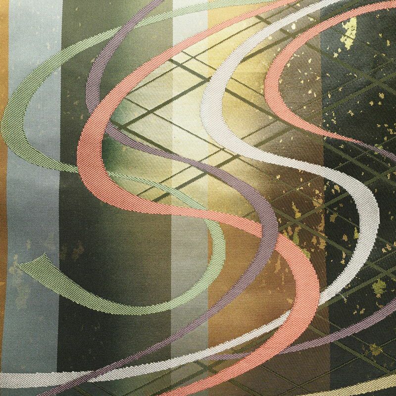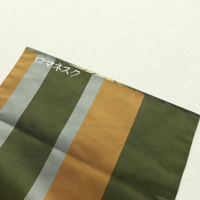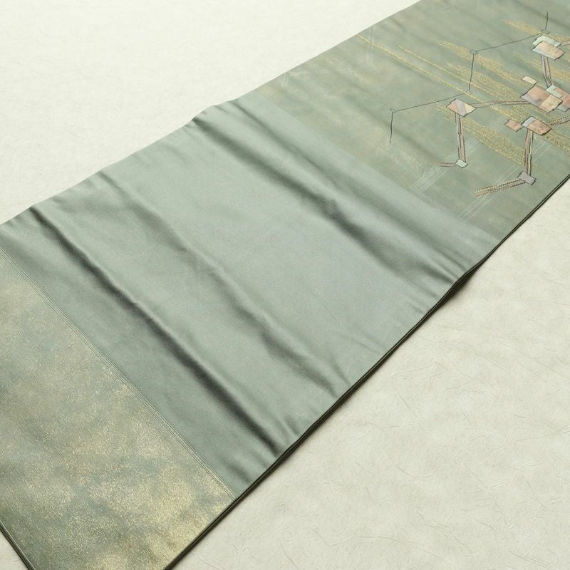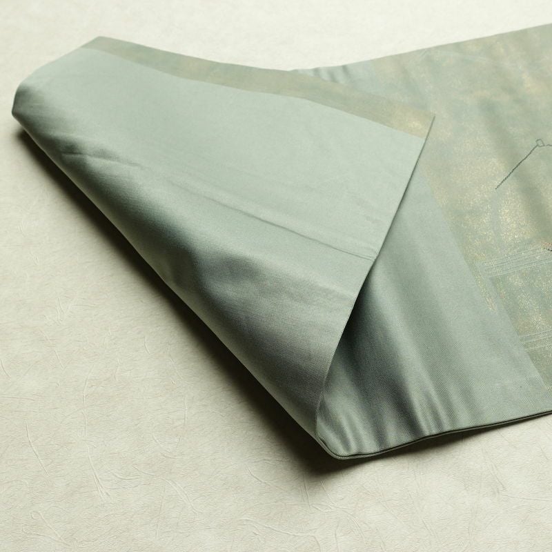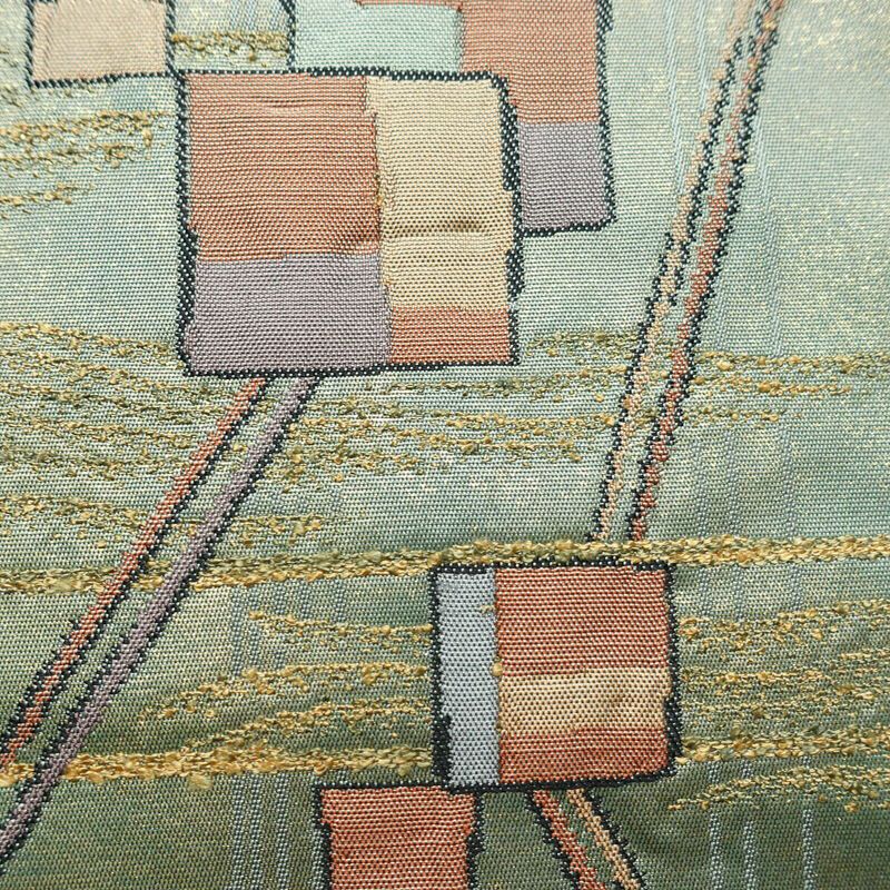 名古屋帯 太鼓柄 正絹 幾何学柄・抽象柄 名古屋仕立て なごや帯 リサイクル帯 帯 箔 モダン 緑・うぐいす色