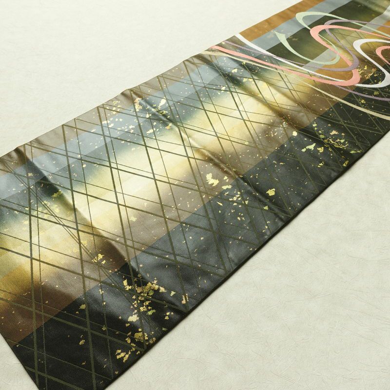 名古屋帯 太鼓柄 良品 正絹 幾何学柄・抽象柄 名古屋仕立て なごや帯 ロマネスク リサイクル帯 帯 箔 多色使い