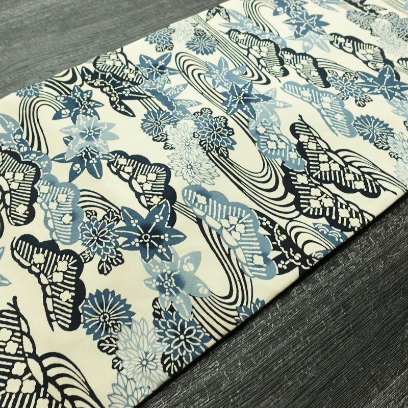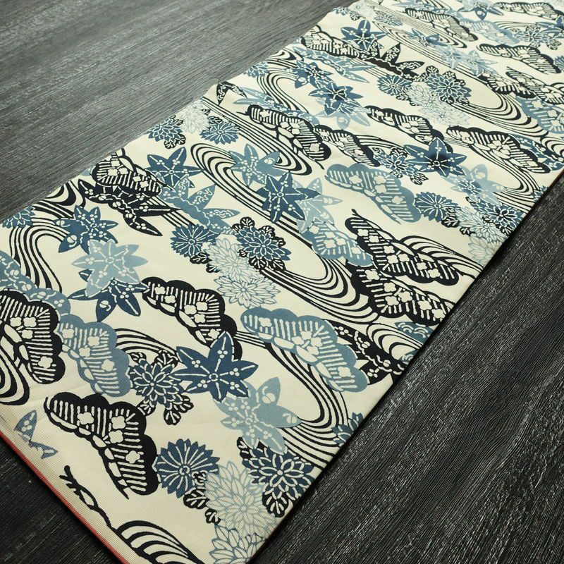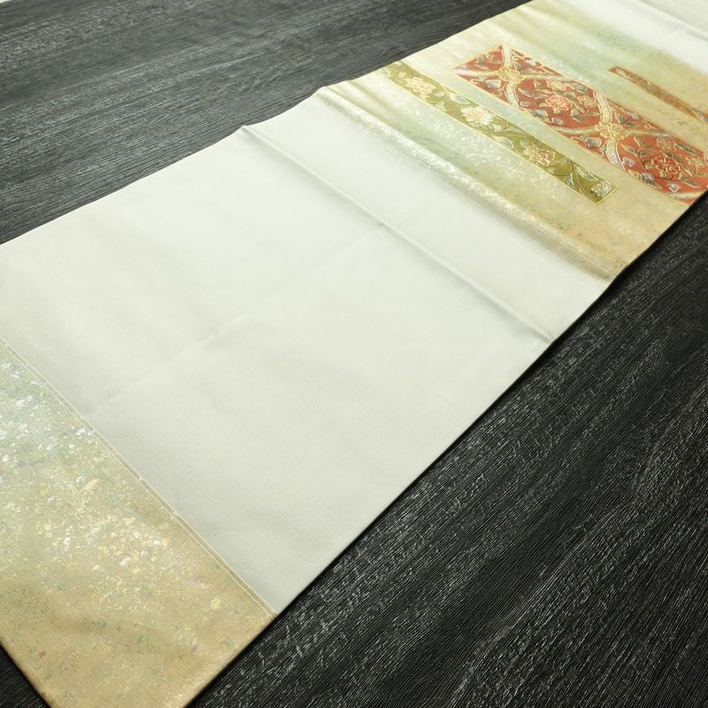 名古屋帯 全通柄 正絹 古典柄 名古屋仕立て なごや帯 リサイクル帯 帯 白
