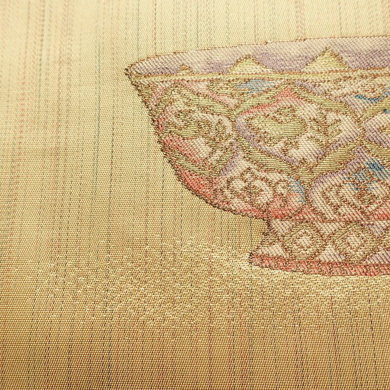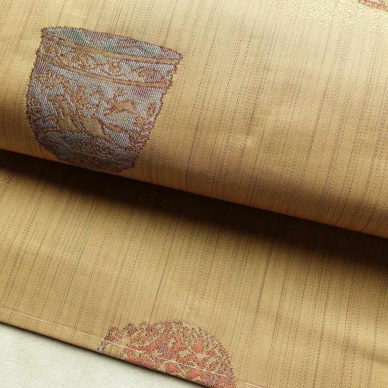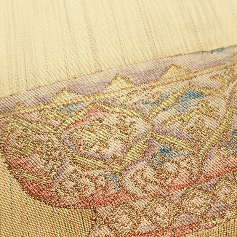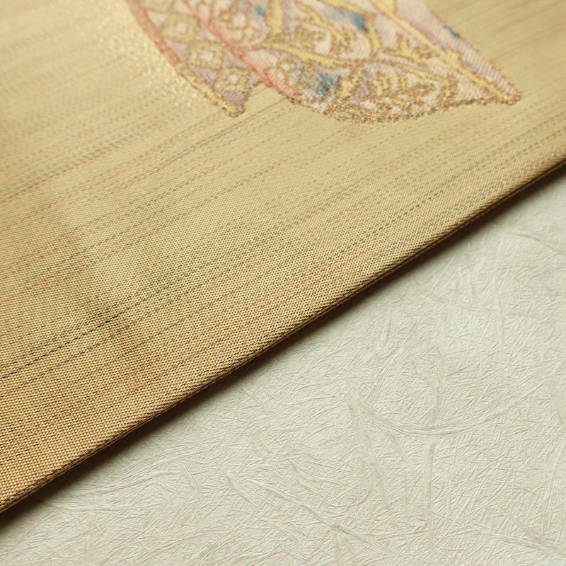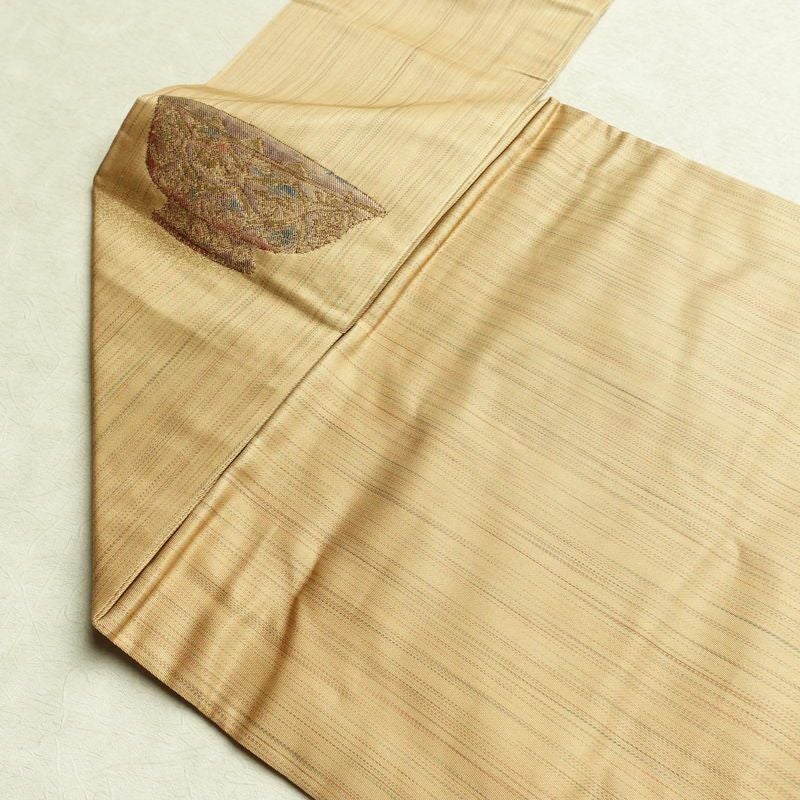 名古屋帯 六通柄 良品 しつけ糸付き 正絹 その他の柄 名古屋仕立て なごや帯 リサイクル帯 帯 黄・黄土色