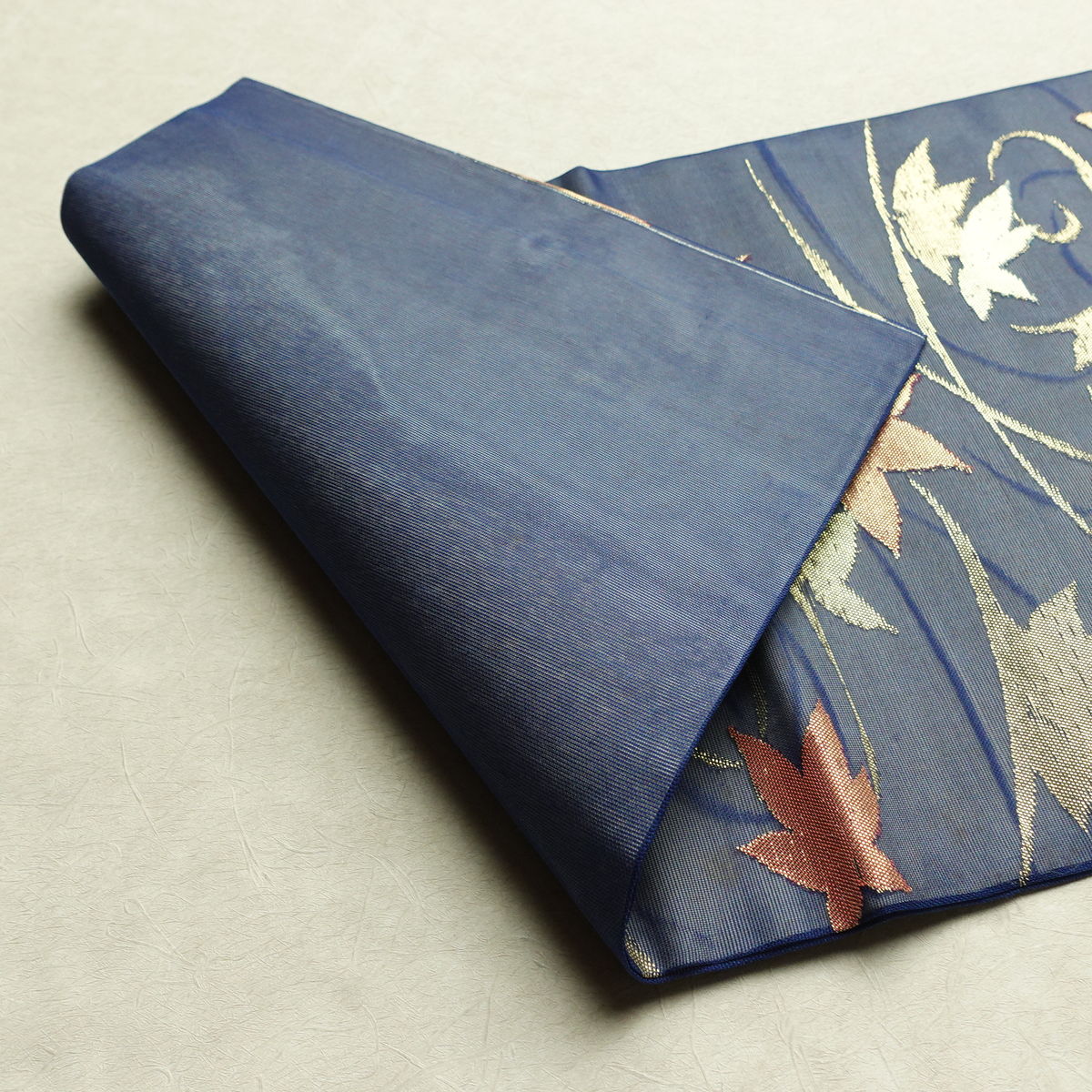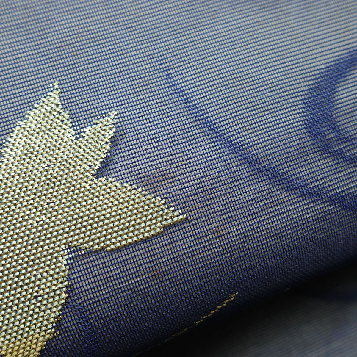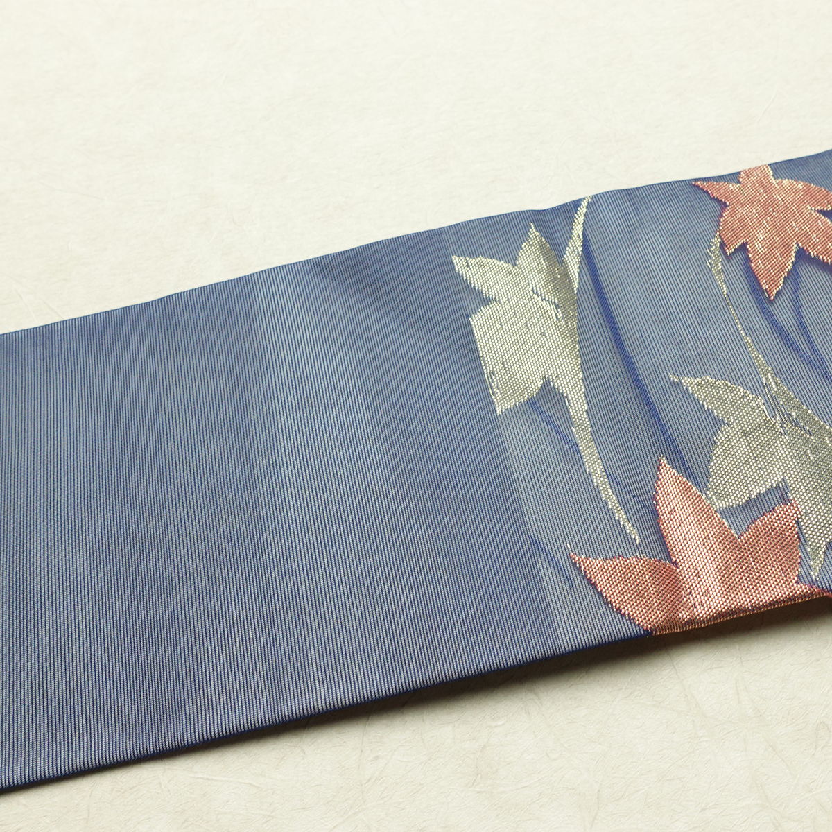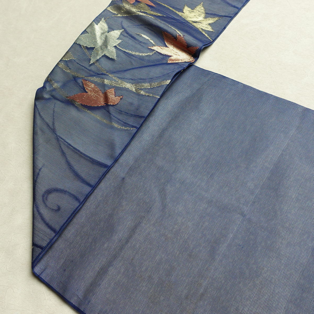 名古屋帯 六通柄 夏用 正絹 木の葉・植物柄 名古屋仕立て なごや帯 リサイクル帯 帯 紅葉 青・紺