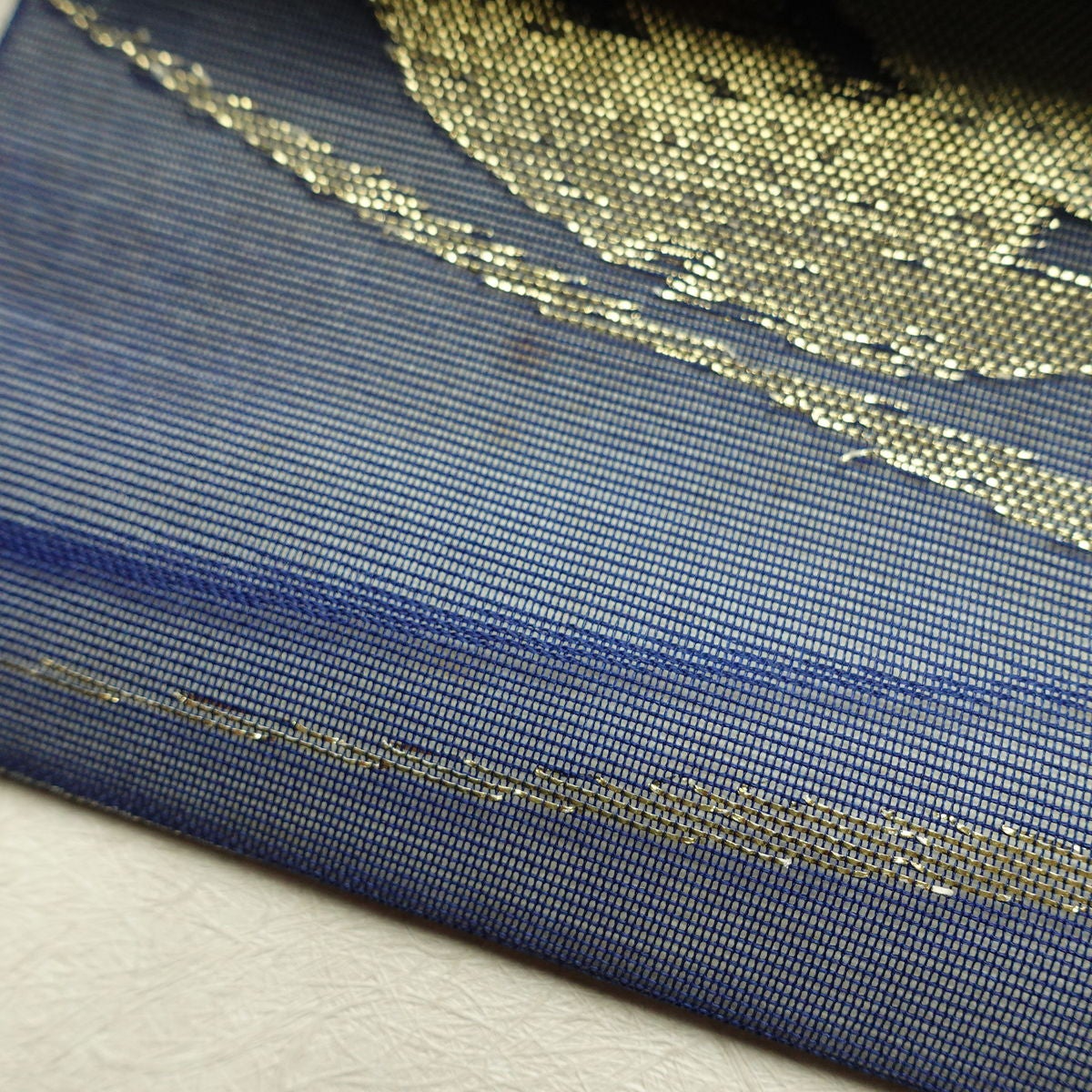 名古屋帯 太鼓柄 良品 正絹 幾何学柄・抽象柄 名古屋仕立て なごや帯 リサイクル帯 帯 引箔 モダン 青・紺