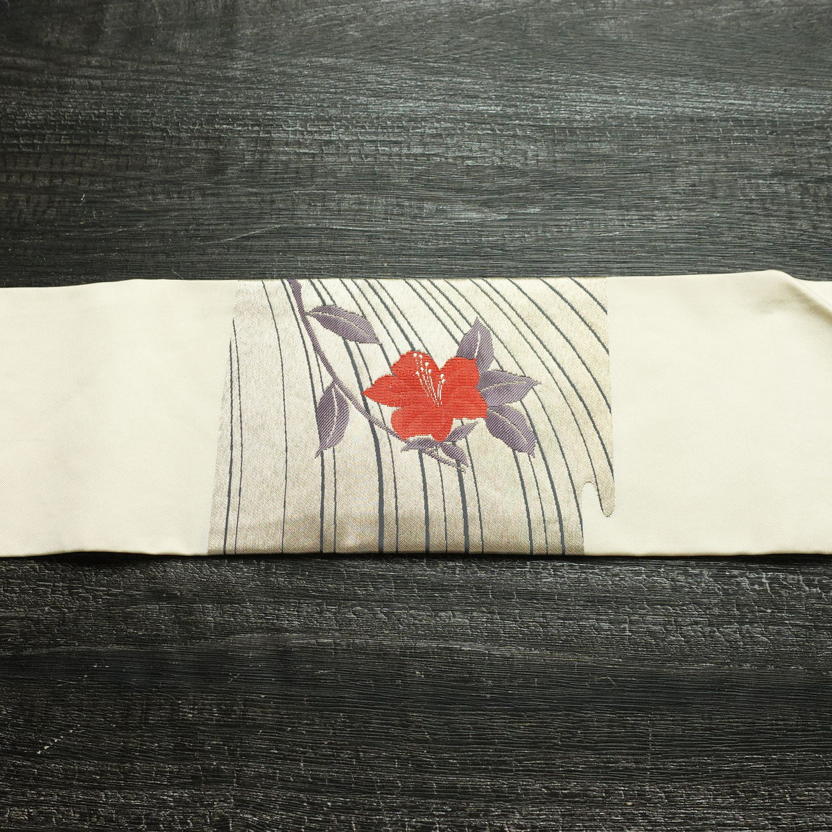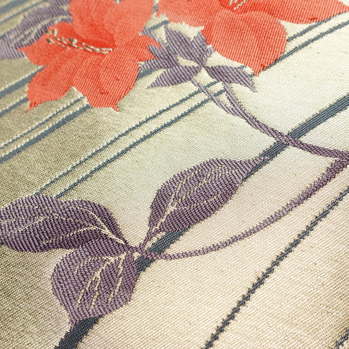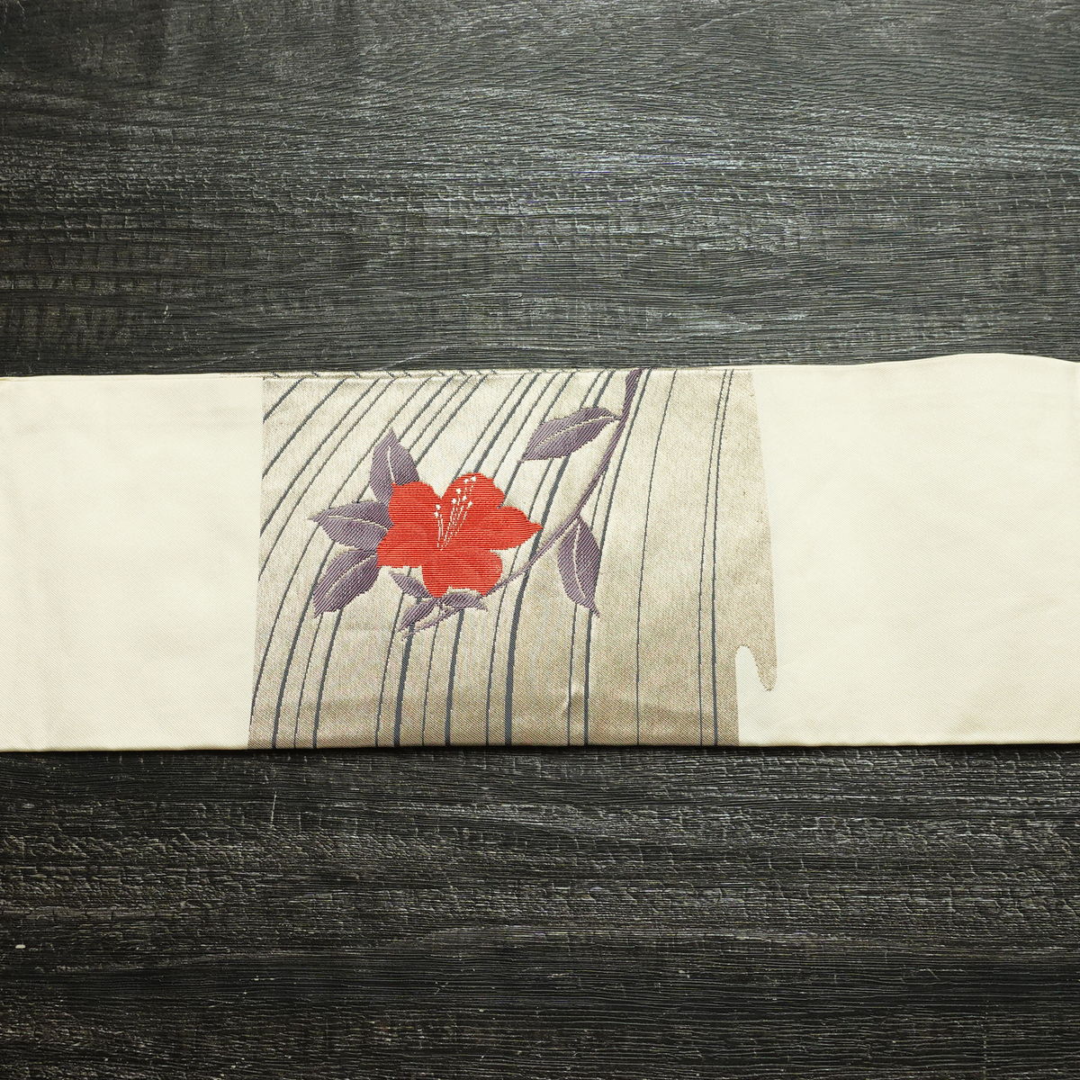 名古屋帯 太鼓柄 正絹 花柄 名古屋仕立て なごや帯 リサイクル帯 帯 箔 金糸 白