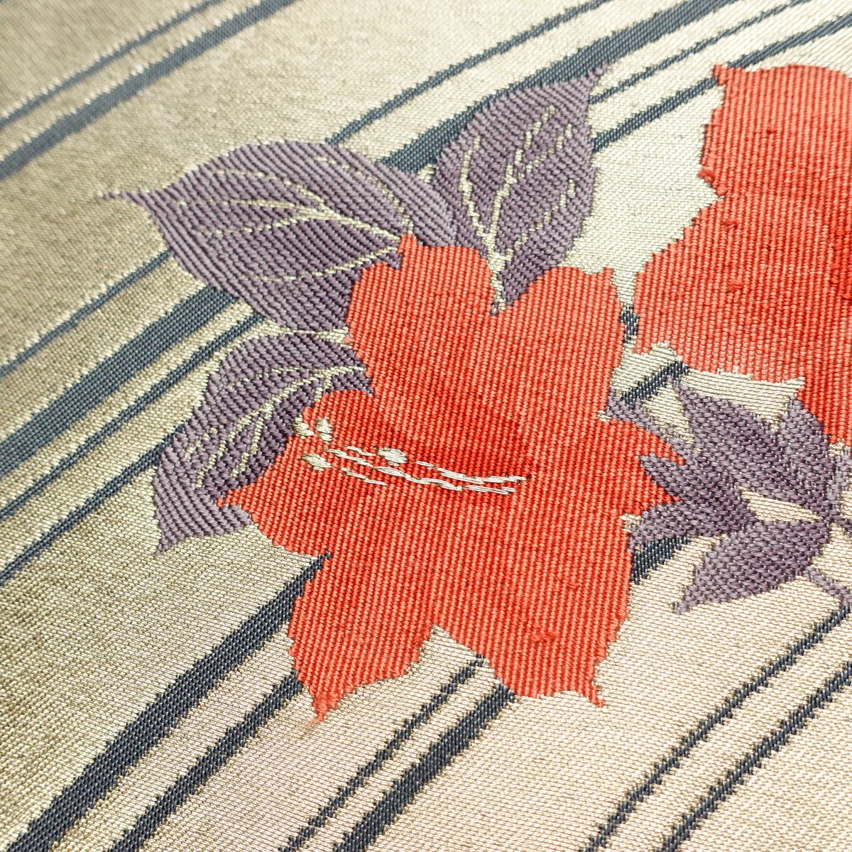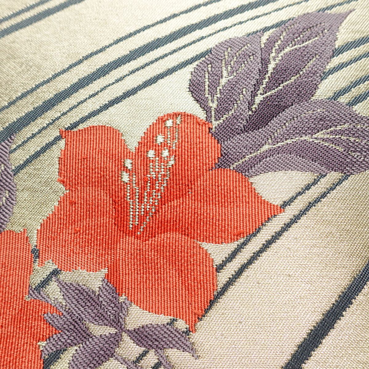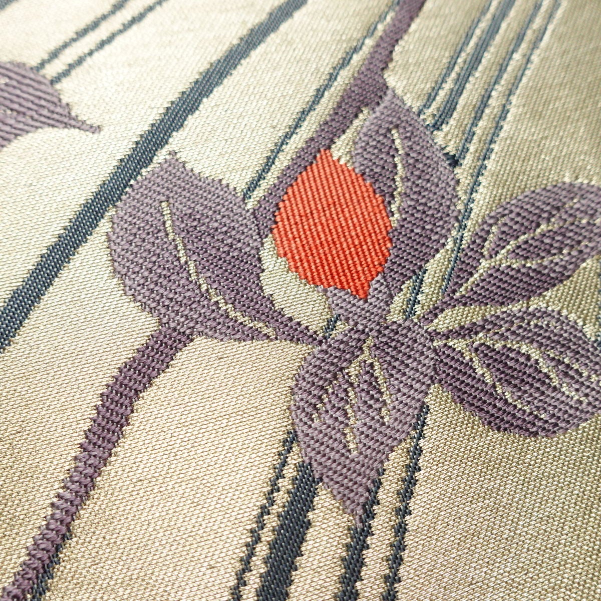 名古屋帯 太鼓柄 正絹 花柄 名古屋仕立て なごや帯 リサイクル帯 帯 箔 金糸 白