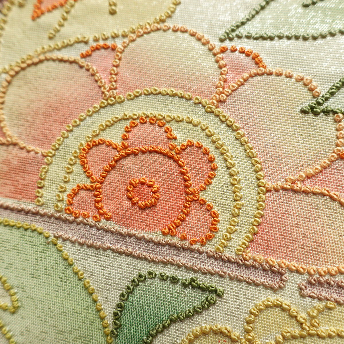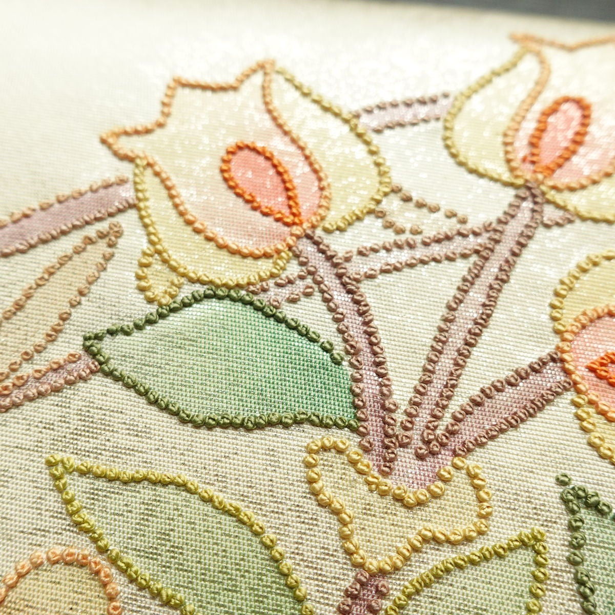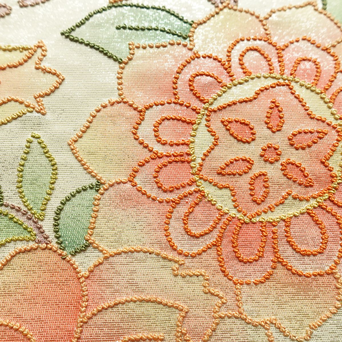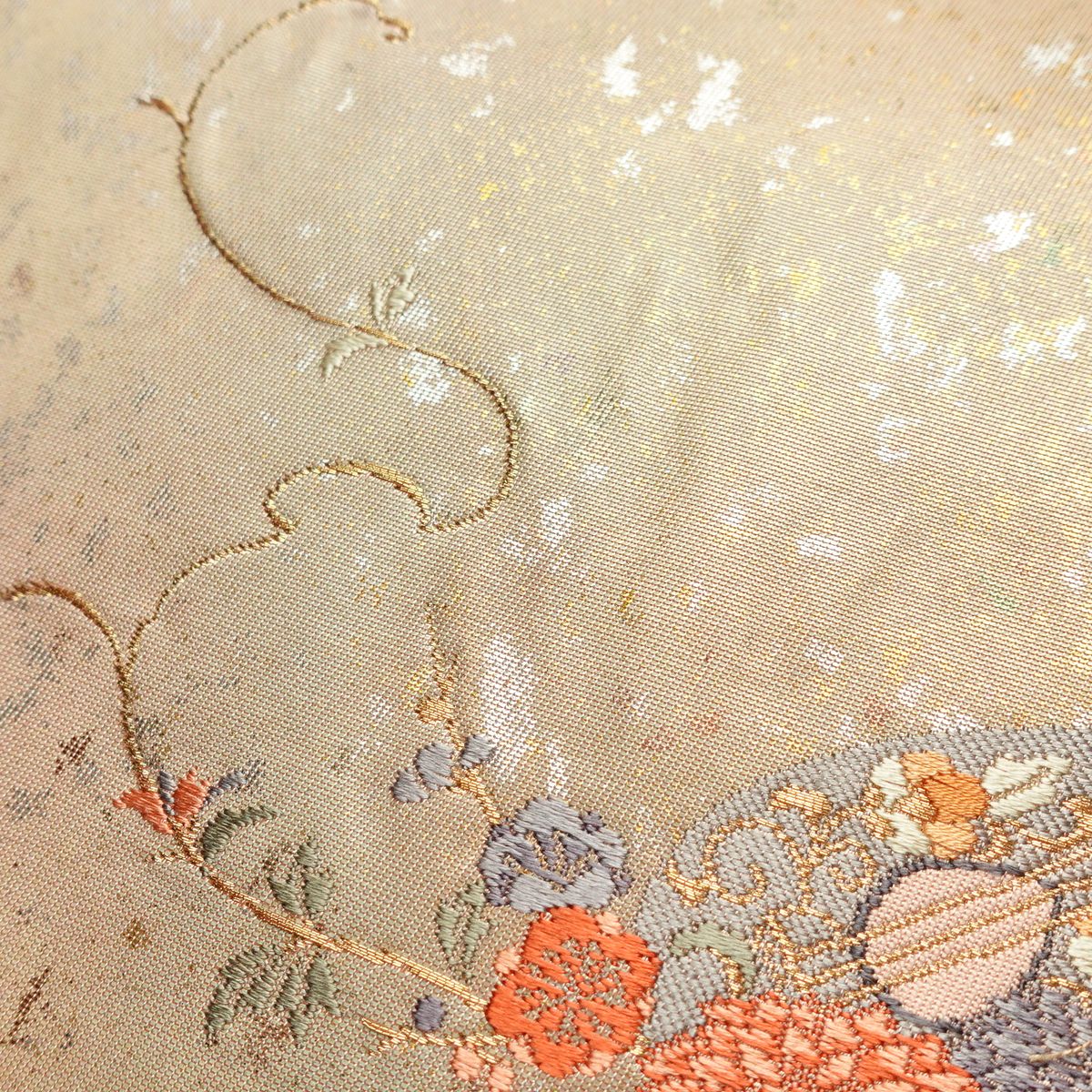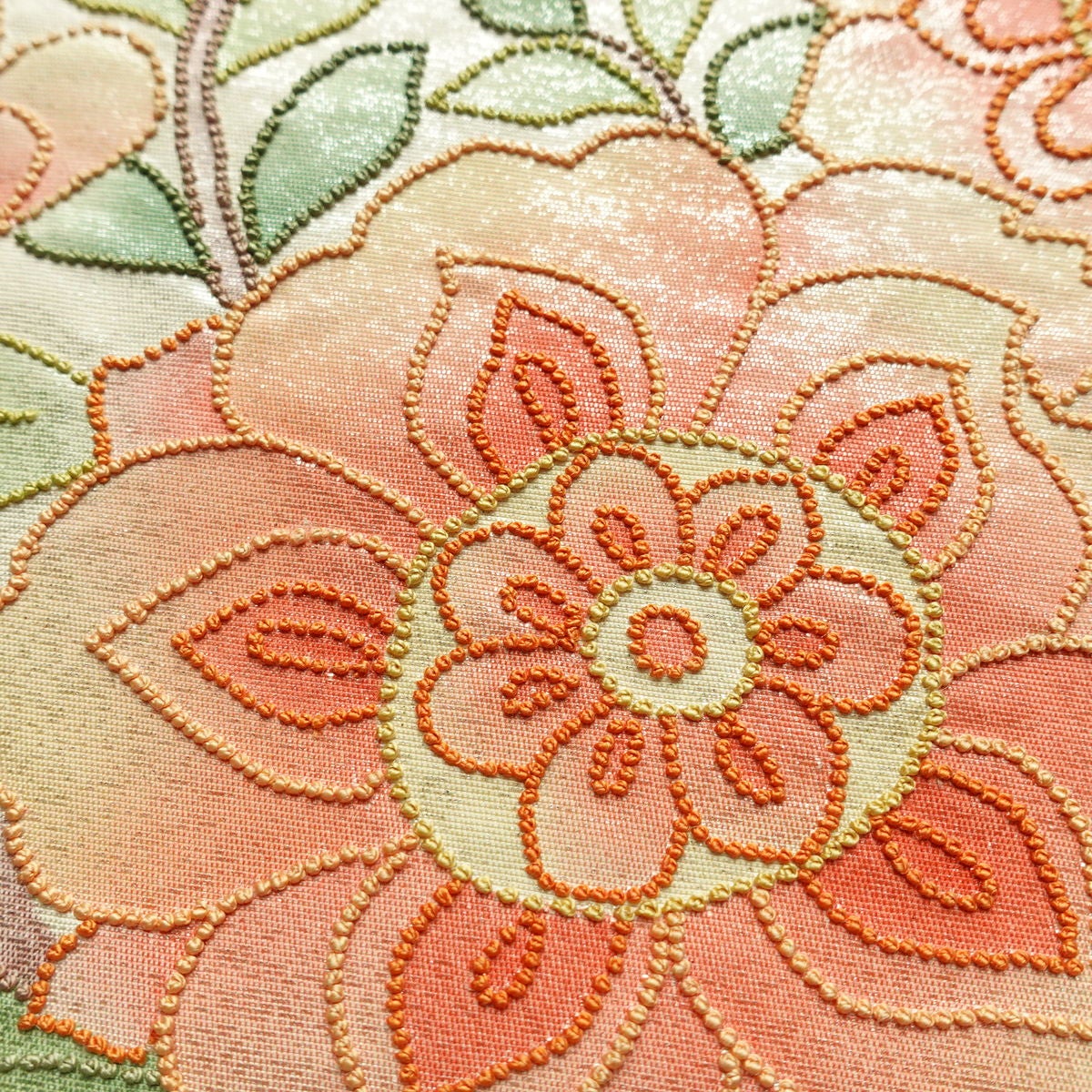 名古屋帯 太鼓柄 相良刺繍 正絹 花柄 名古屋仕立て なごや帯 リサイクル帯 帯 白