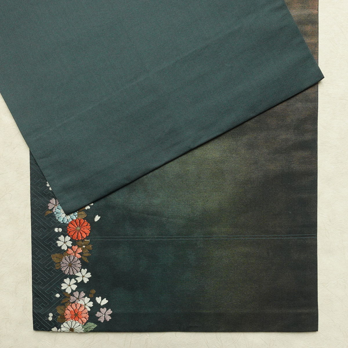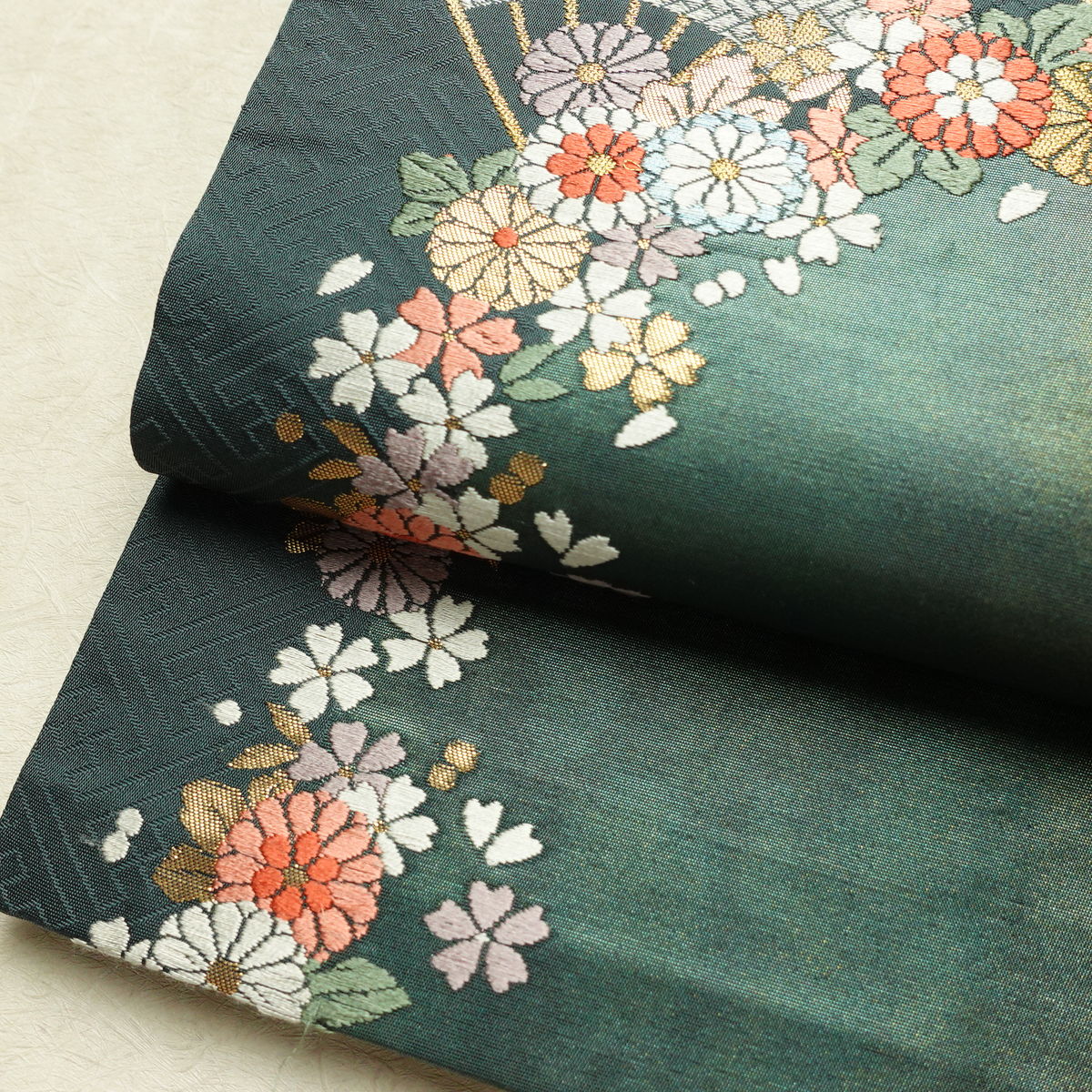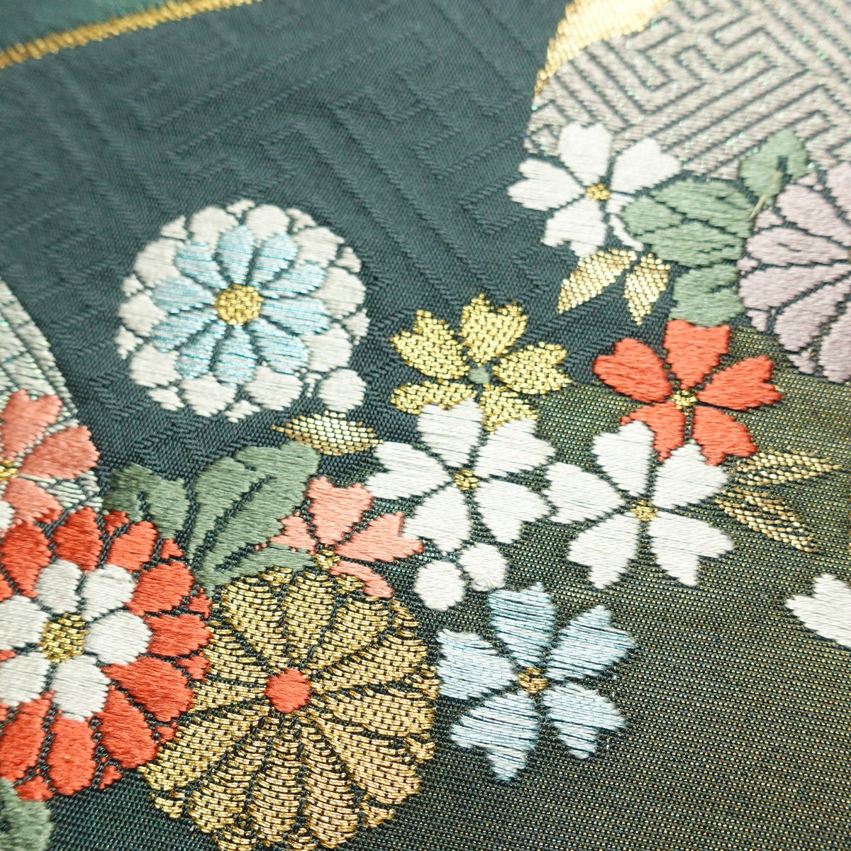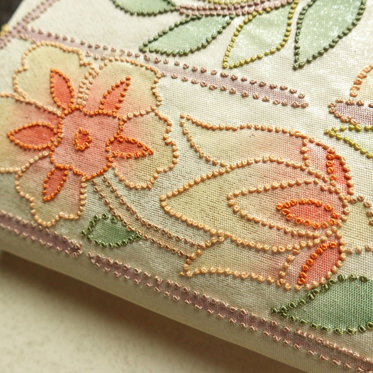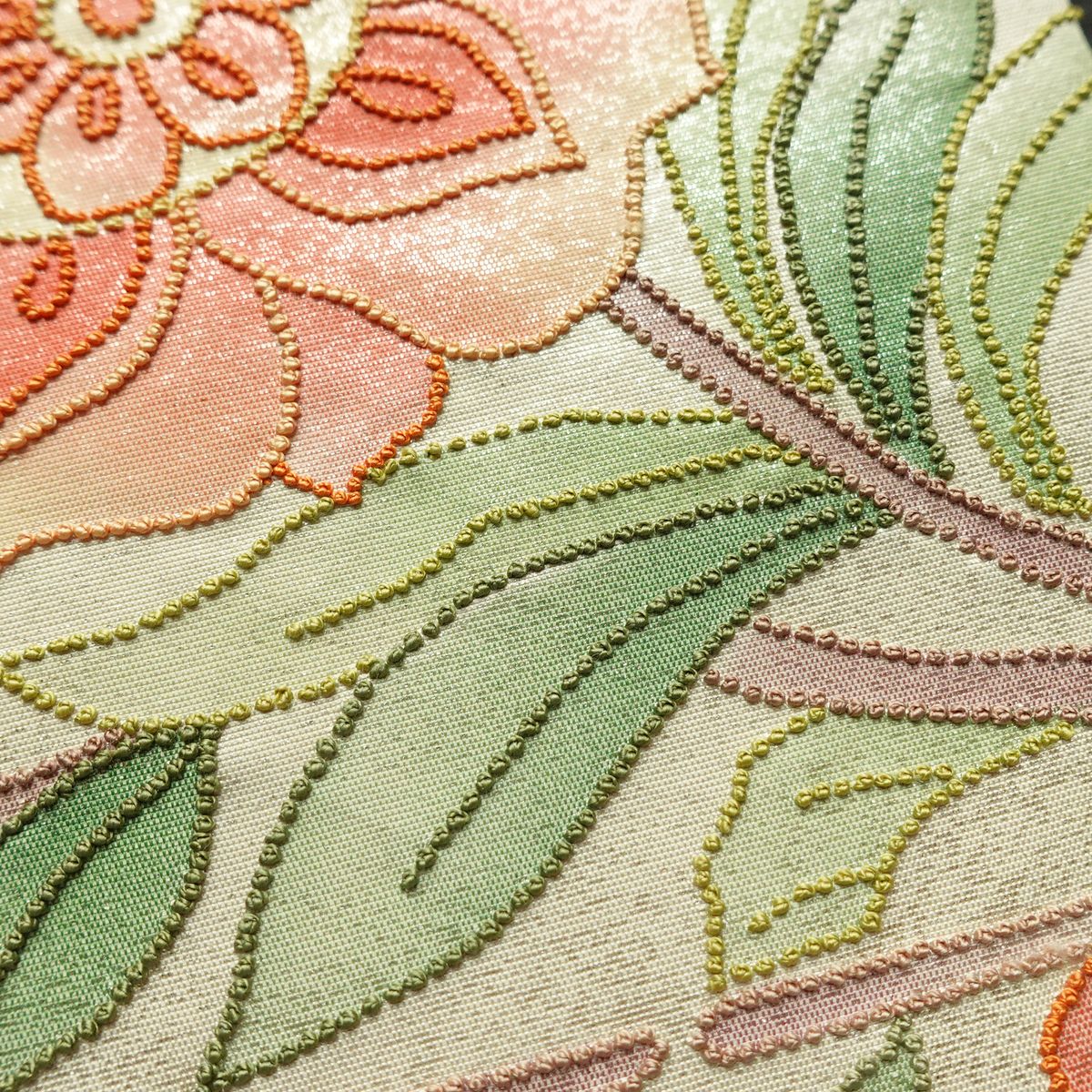 名古屋帯 太鼓柄 相良刺繍 正絹 花柄 名古屋仕立て なごや帯 リサイクル帯 帯 白
