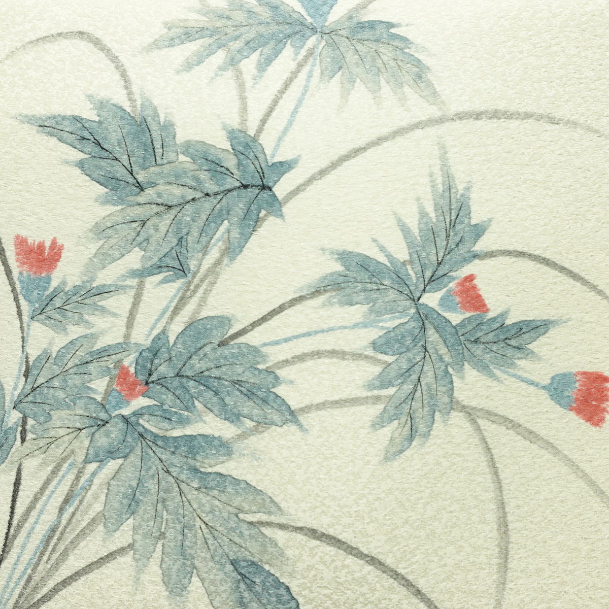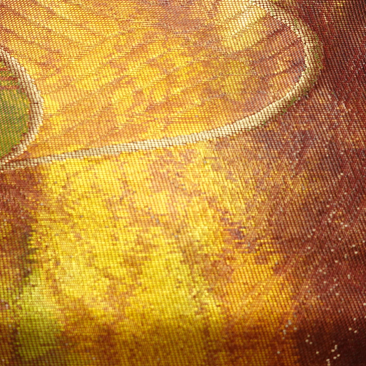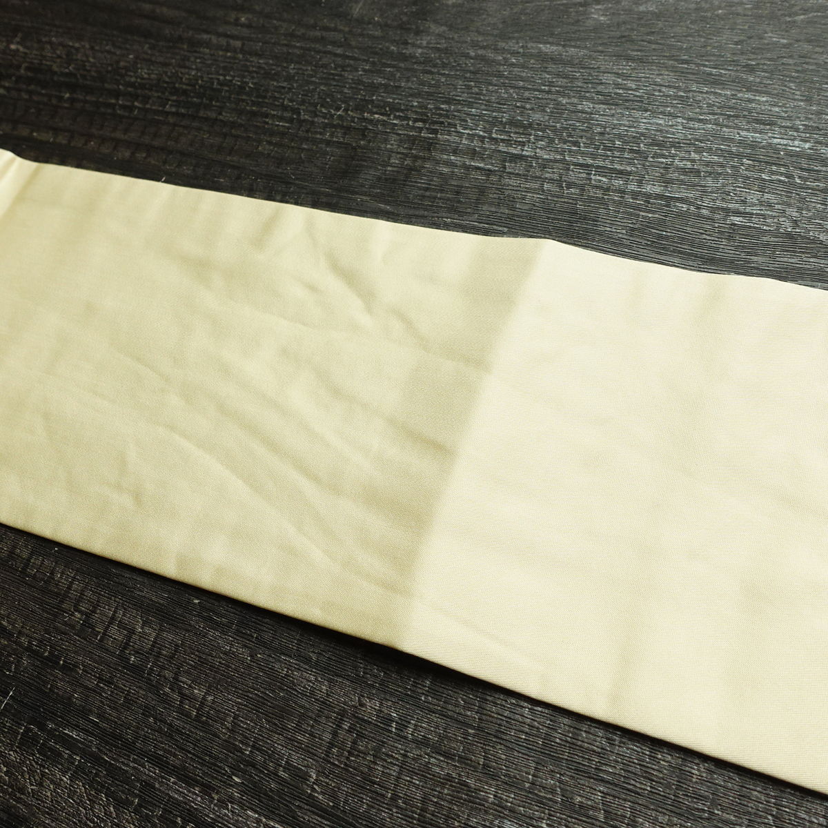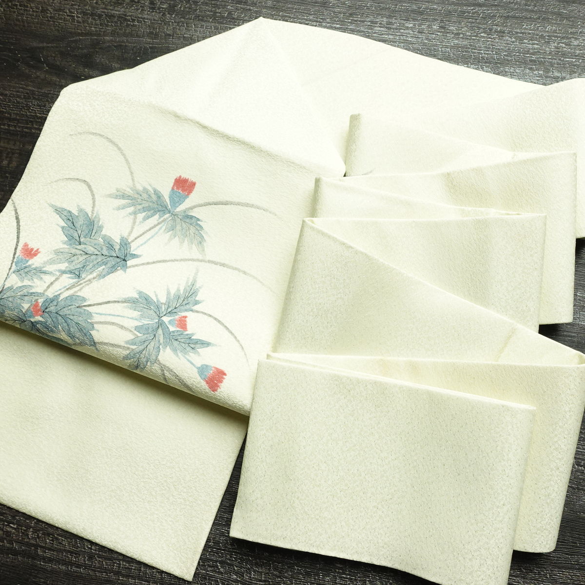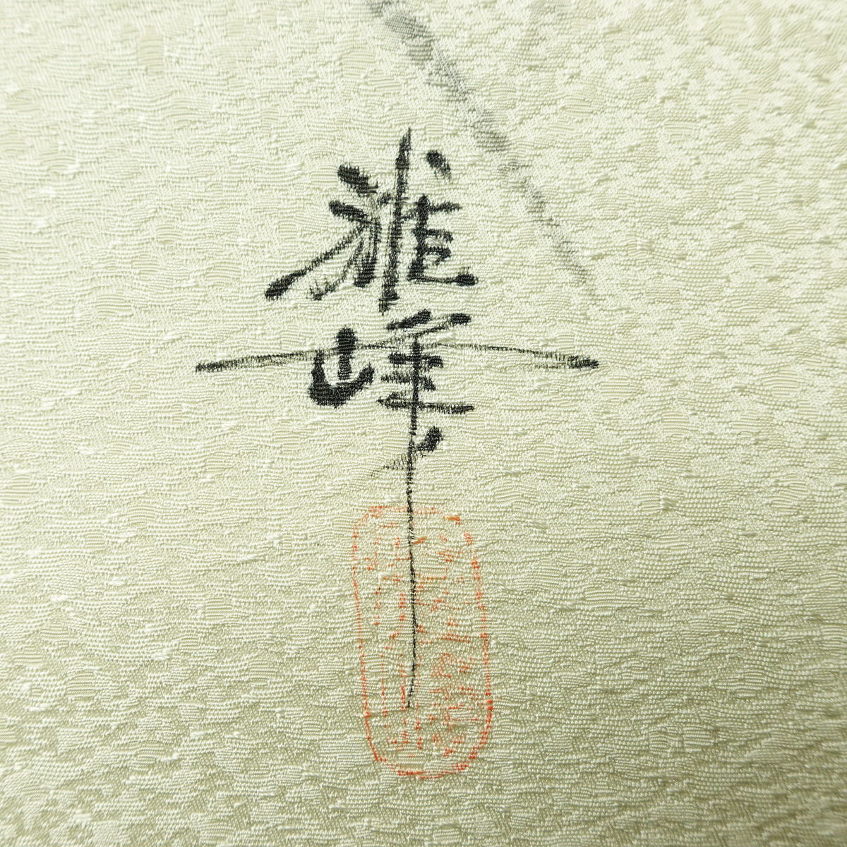 名古屋帯 太鼓柄 美品 落款入り 正絹 木の葉・植物柄 名古屋仕立て なごや帯 リサイクル帯 帯 白