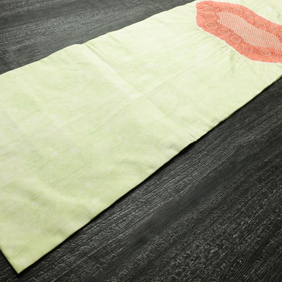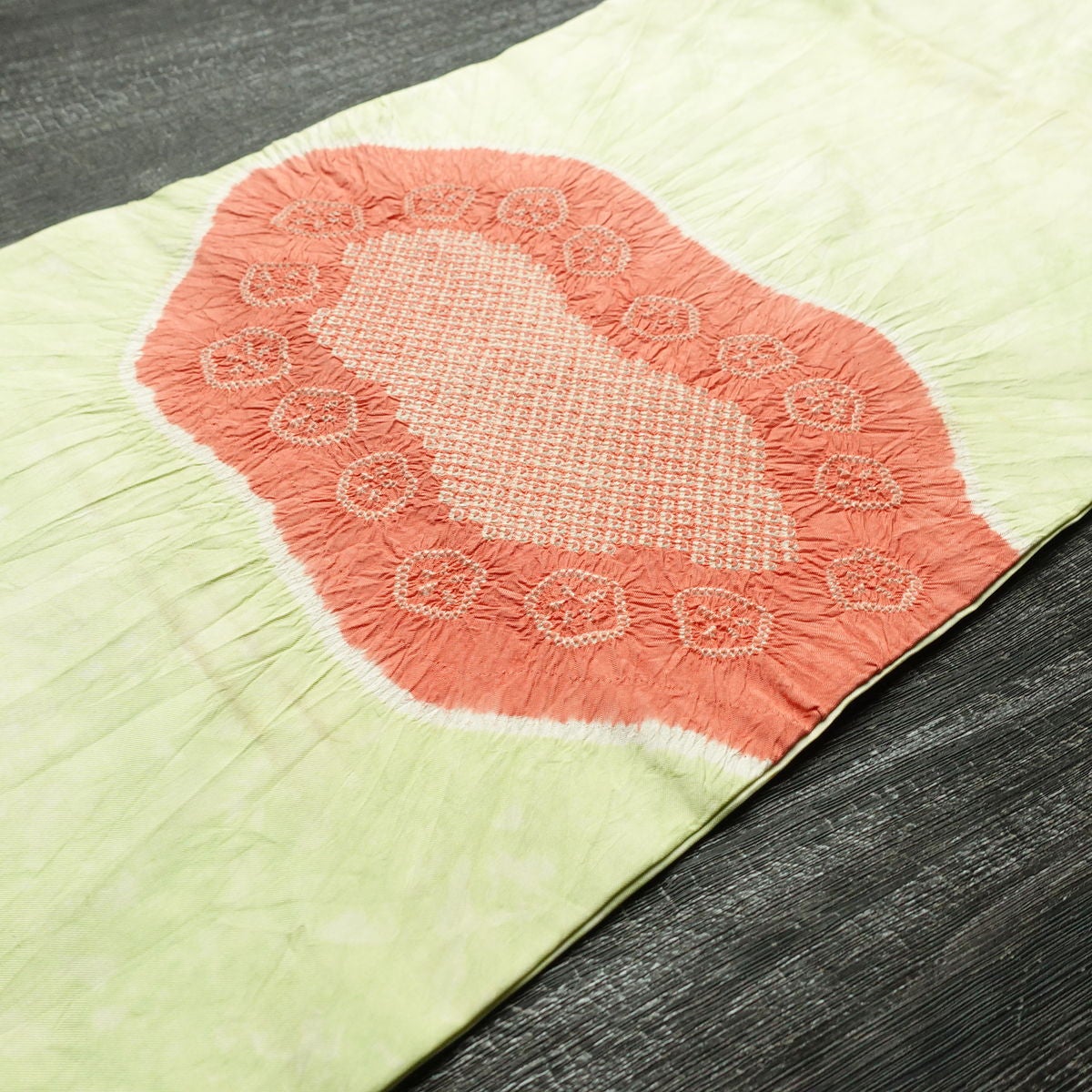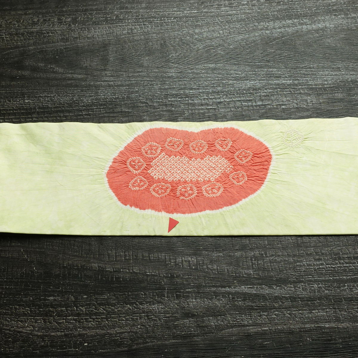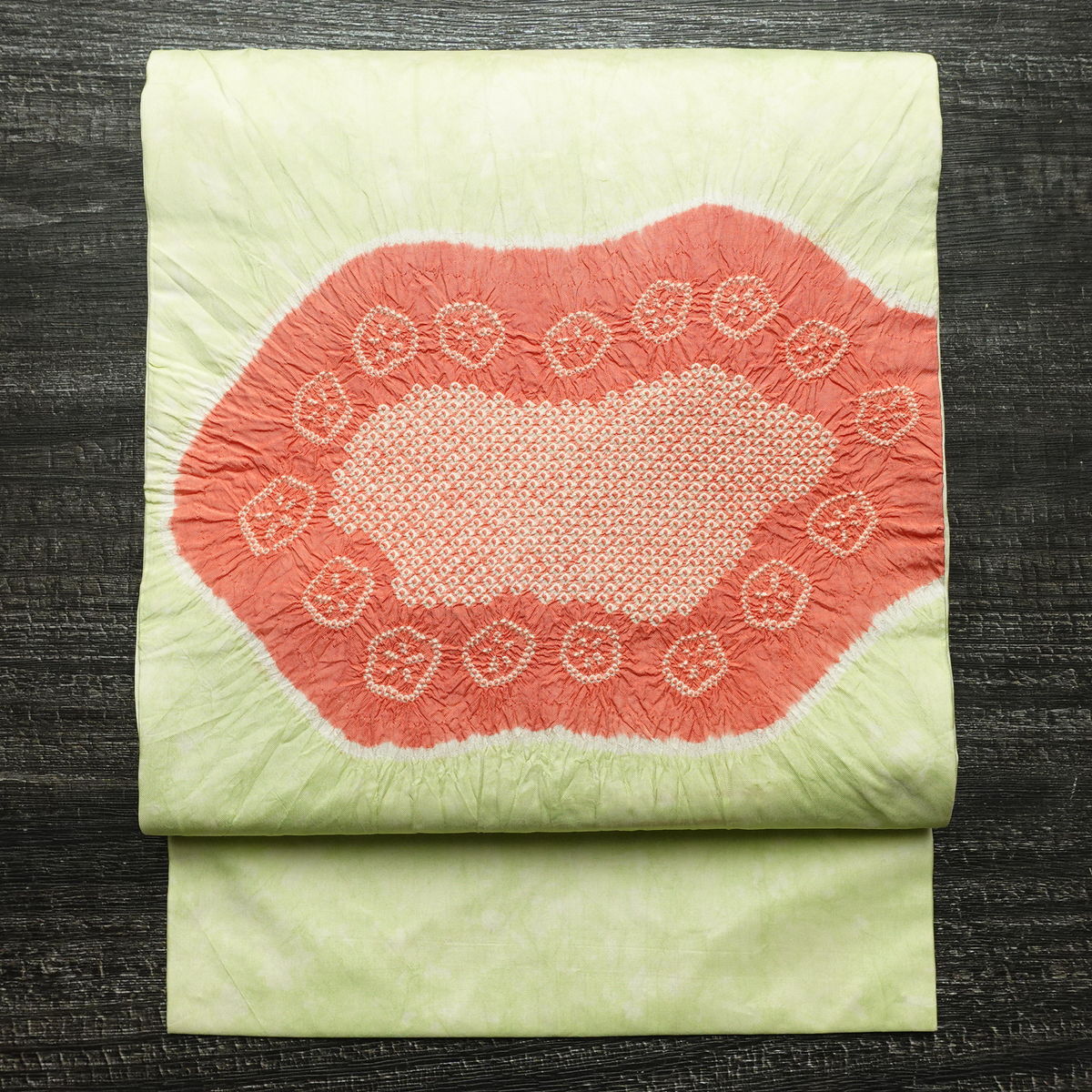 名古屋帯 太鼓柄 絞り 正絹 幾何学柄・抽象柄 名古屋仕立て なごや帯 リサイクル帯 帯 緑・うぐいす色