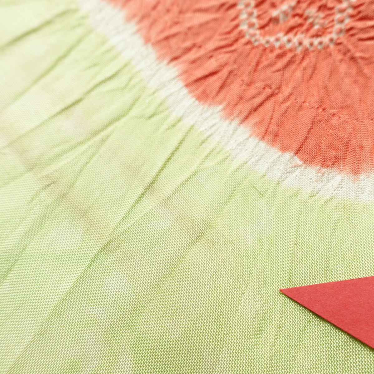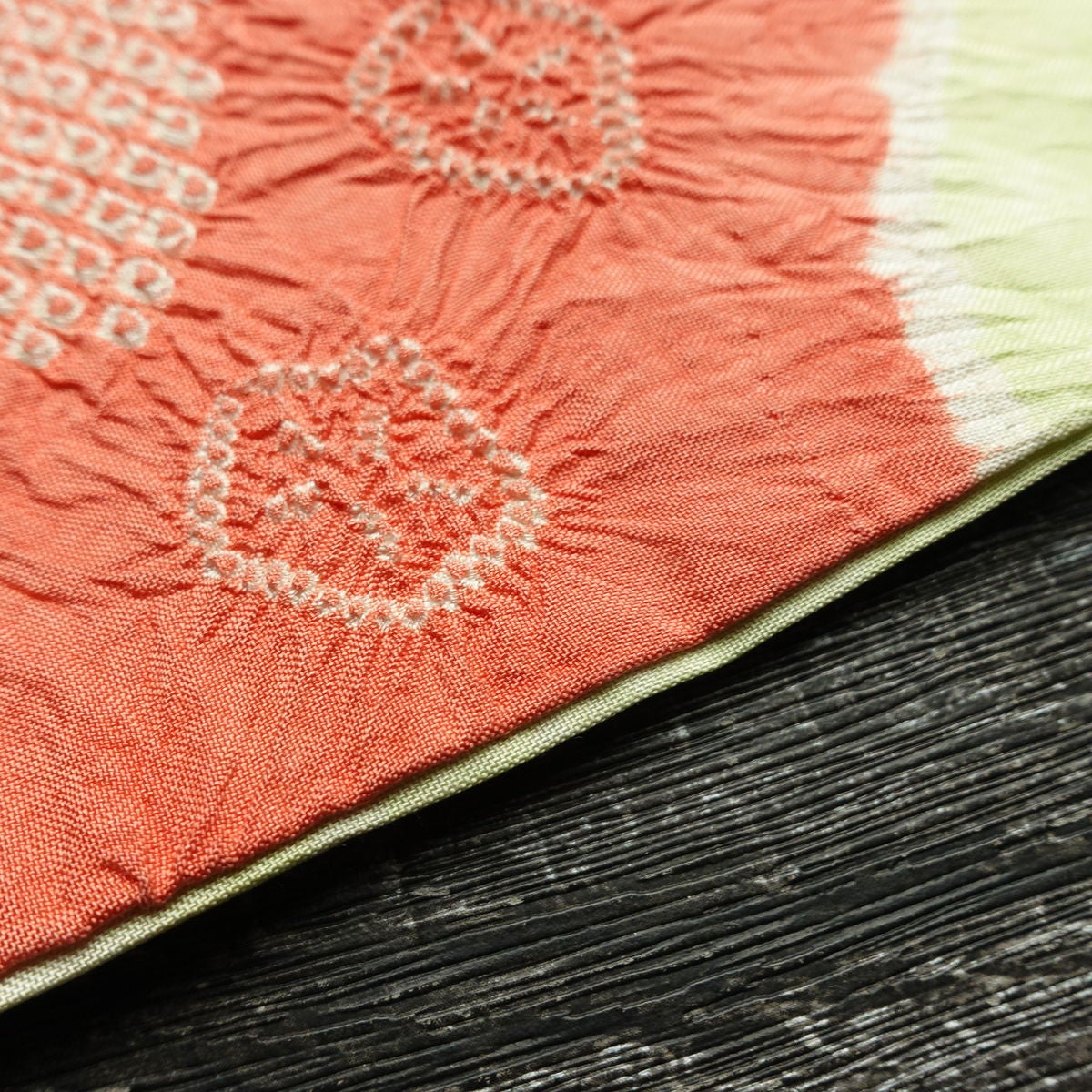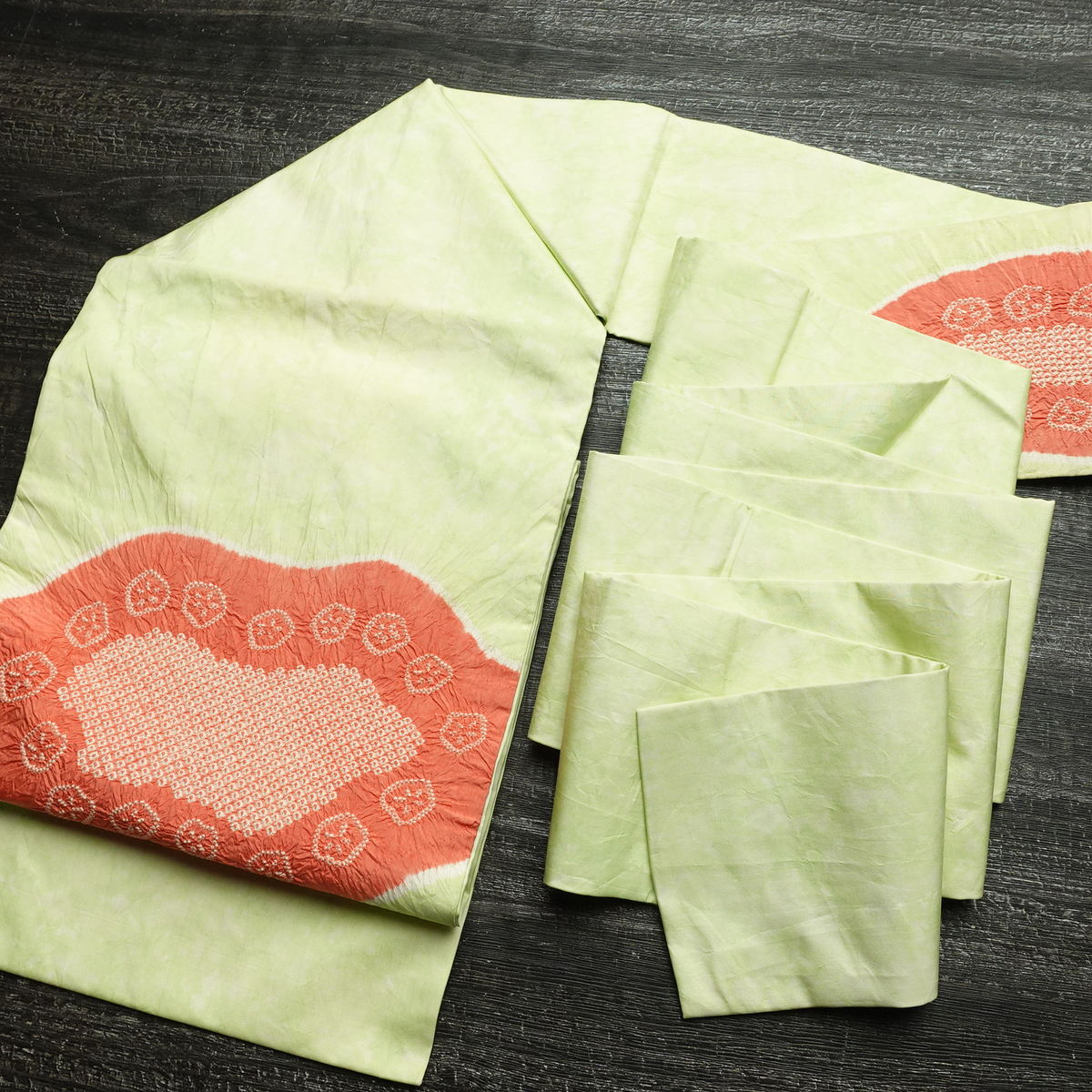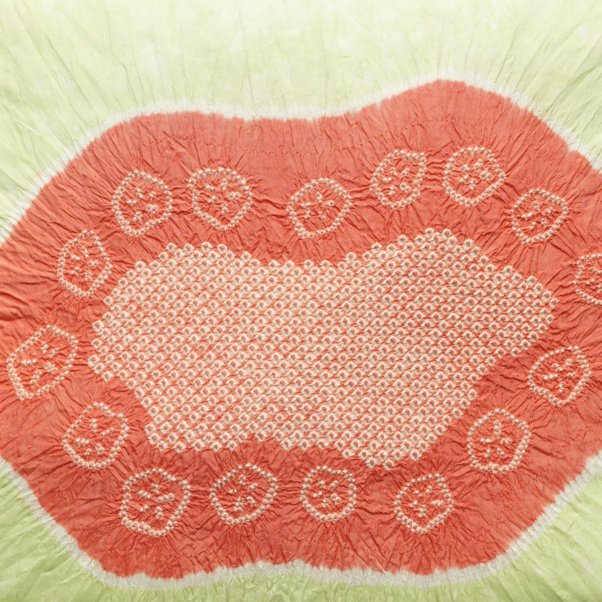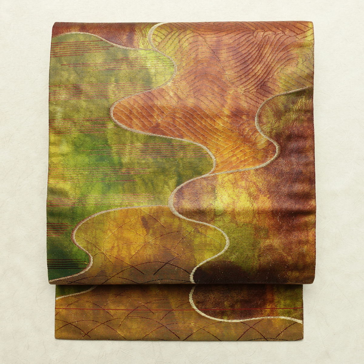 名古屋帯 太鼓柄 絞り 正絹 幾何学柄・抽象柄 名古屋仕立て なごや帯 リサイクル帯 帯 緑・うぐいす色