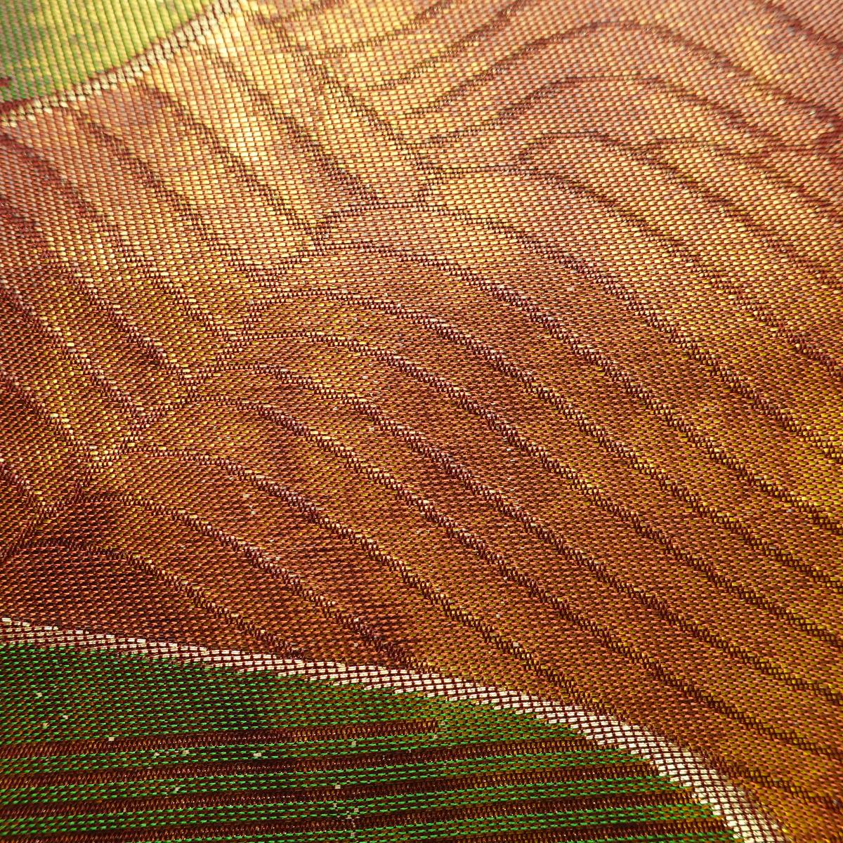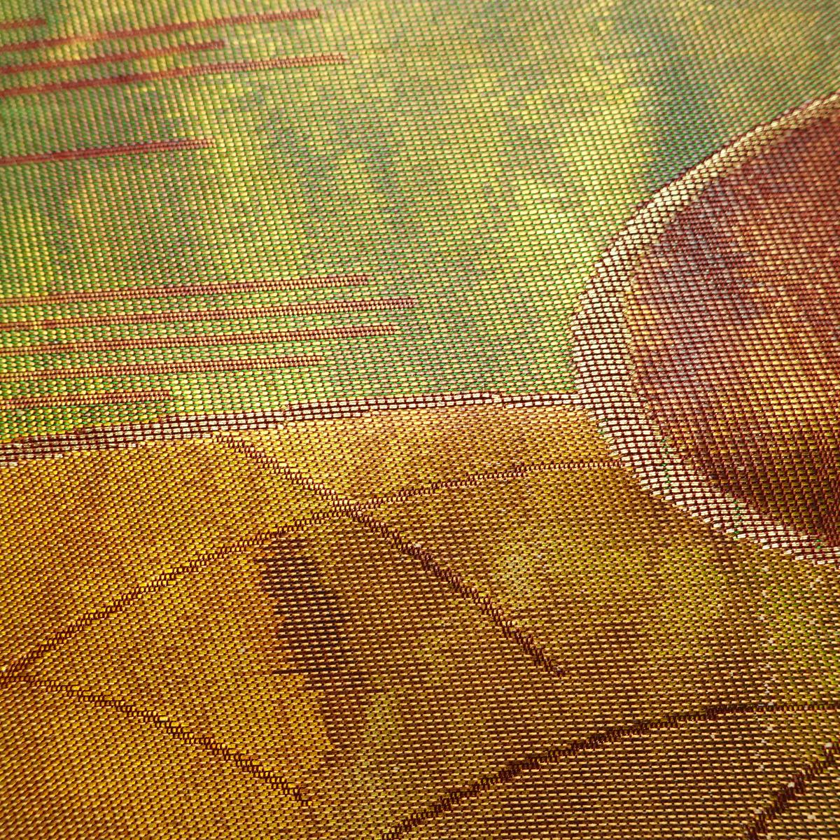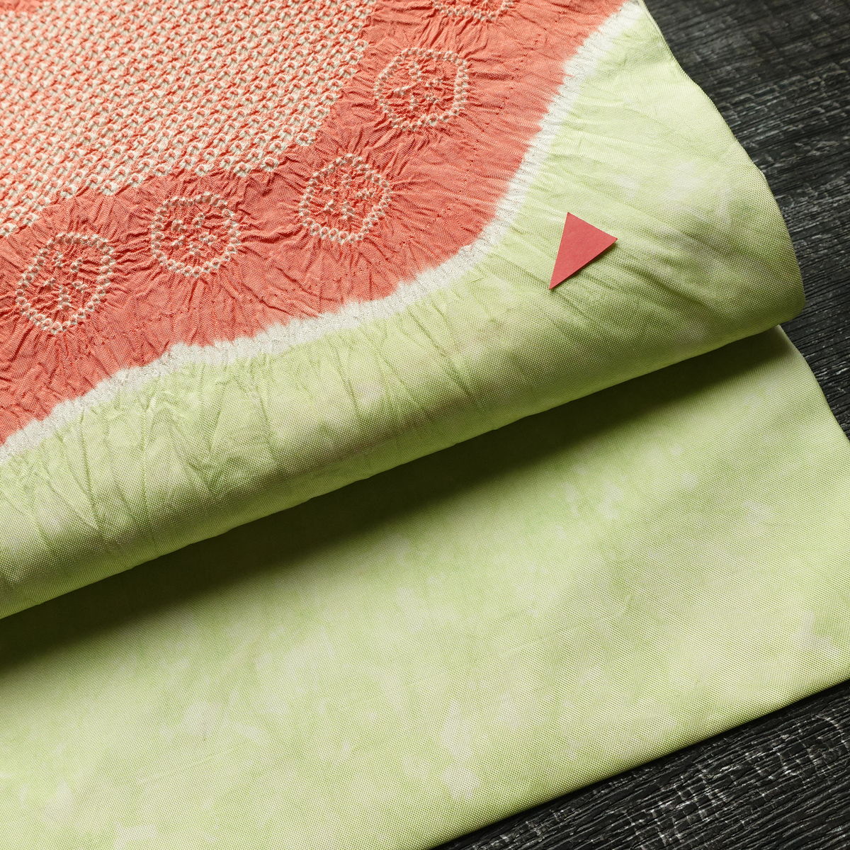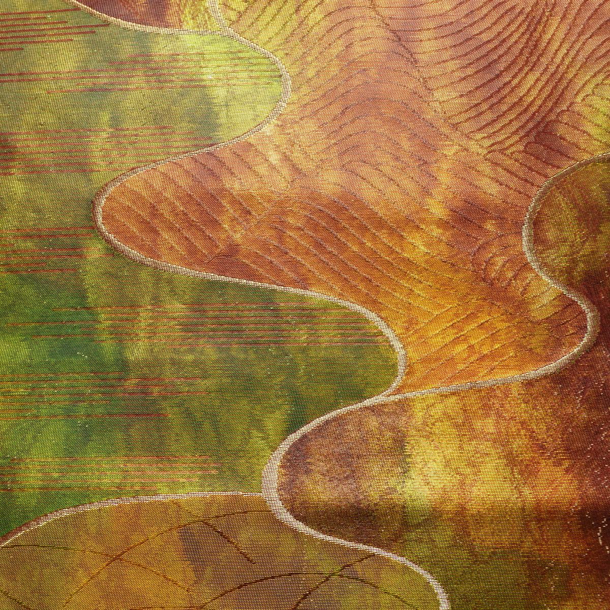 名古屋帯 太鼓柄 絞り 正絹 幾何学柄・抽象柄 名古屋仕立て なごや帯 リサイクル帯 帯 緑・うぐいす色