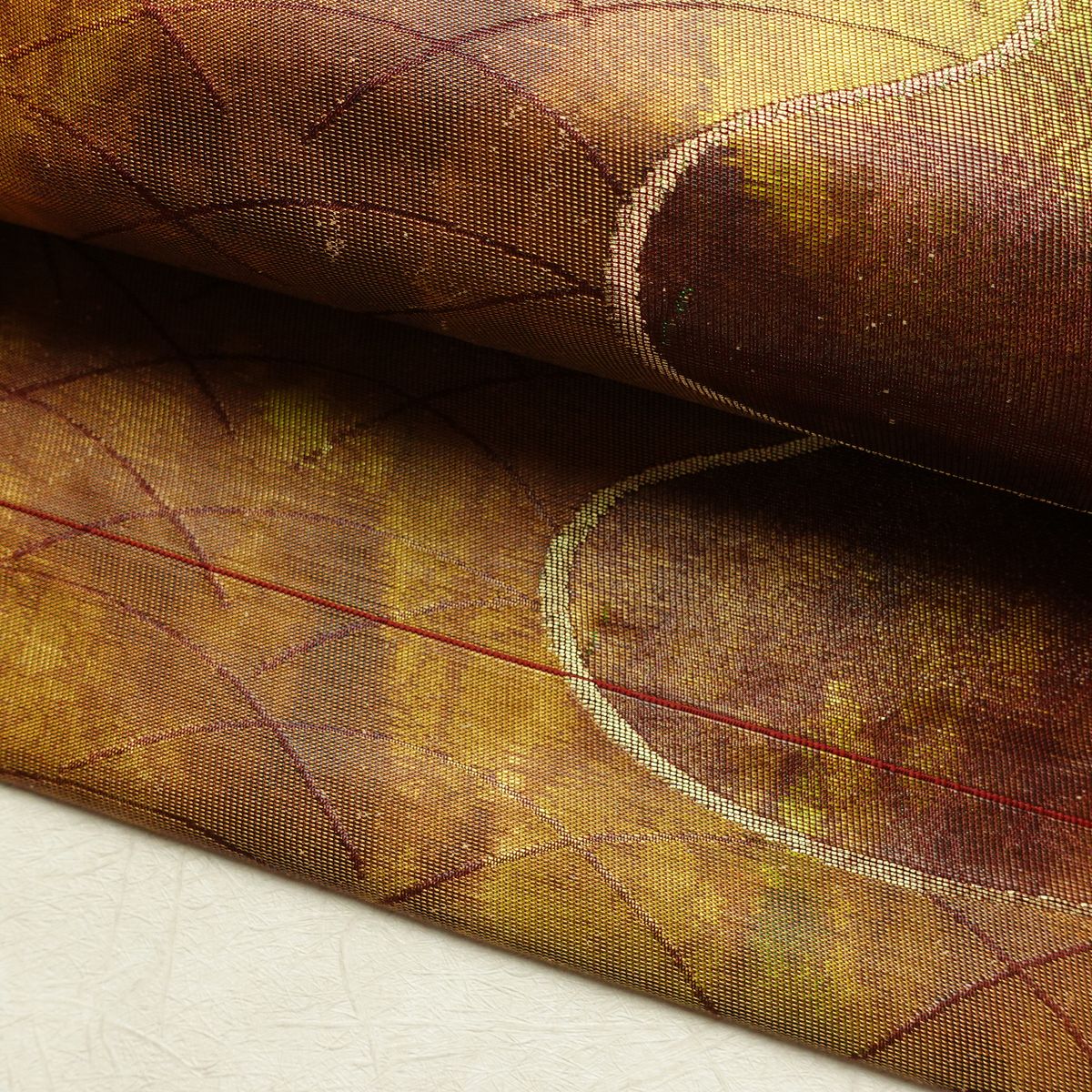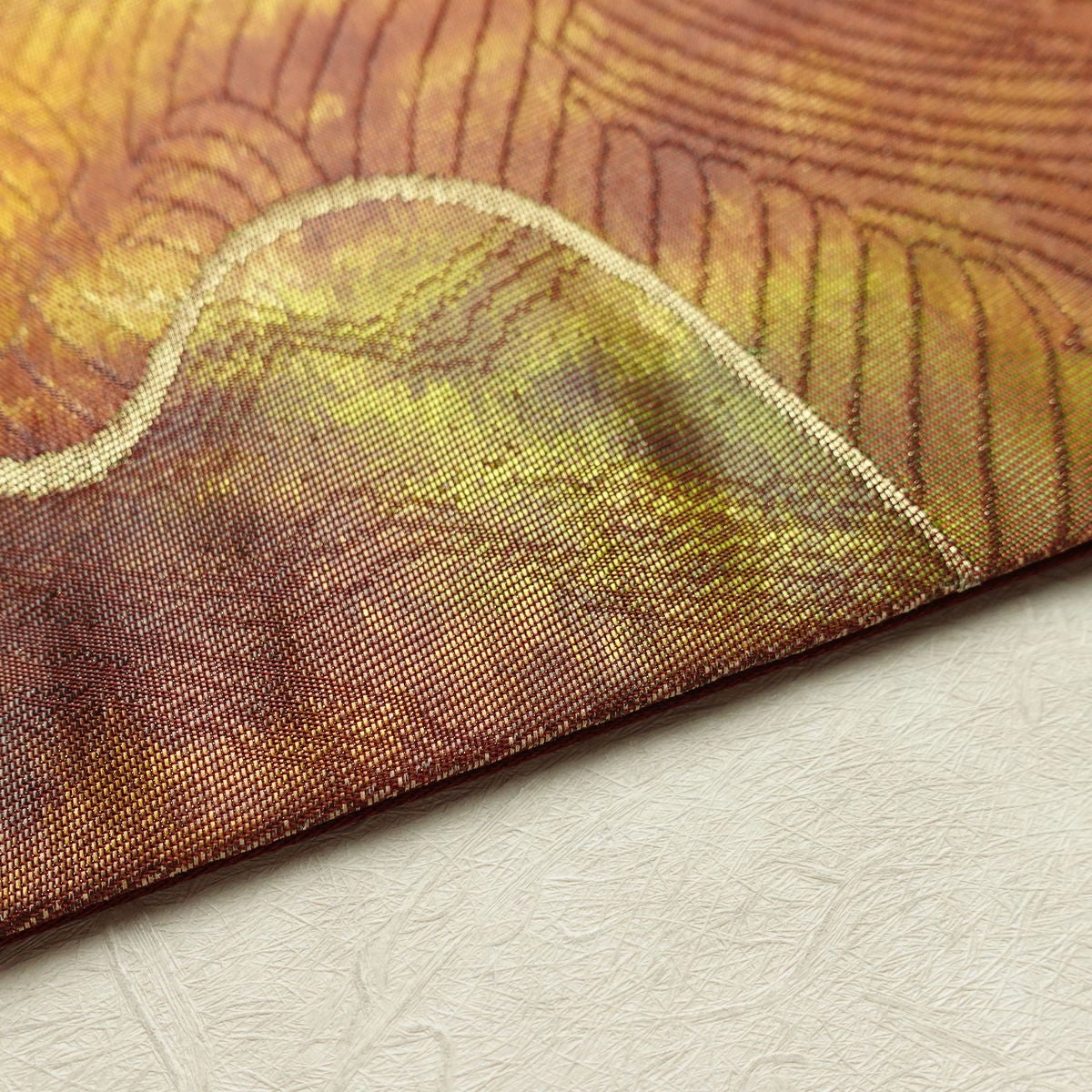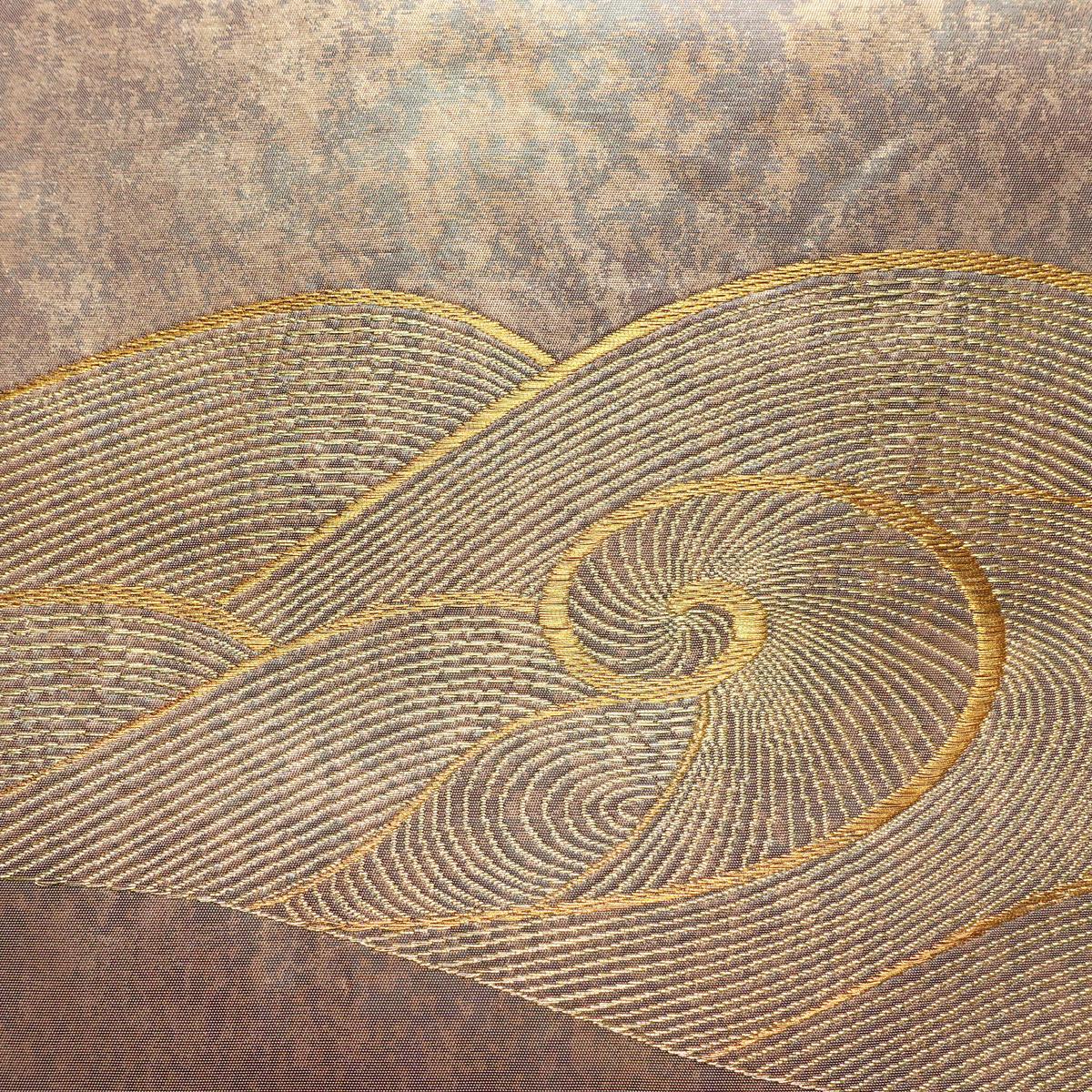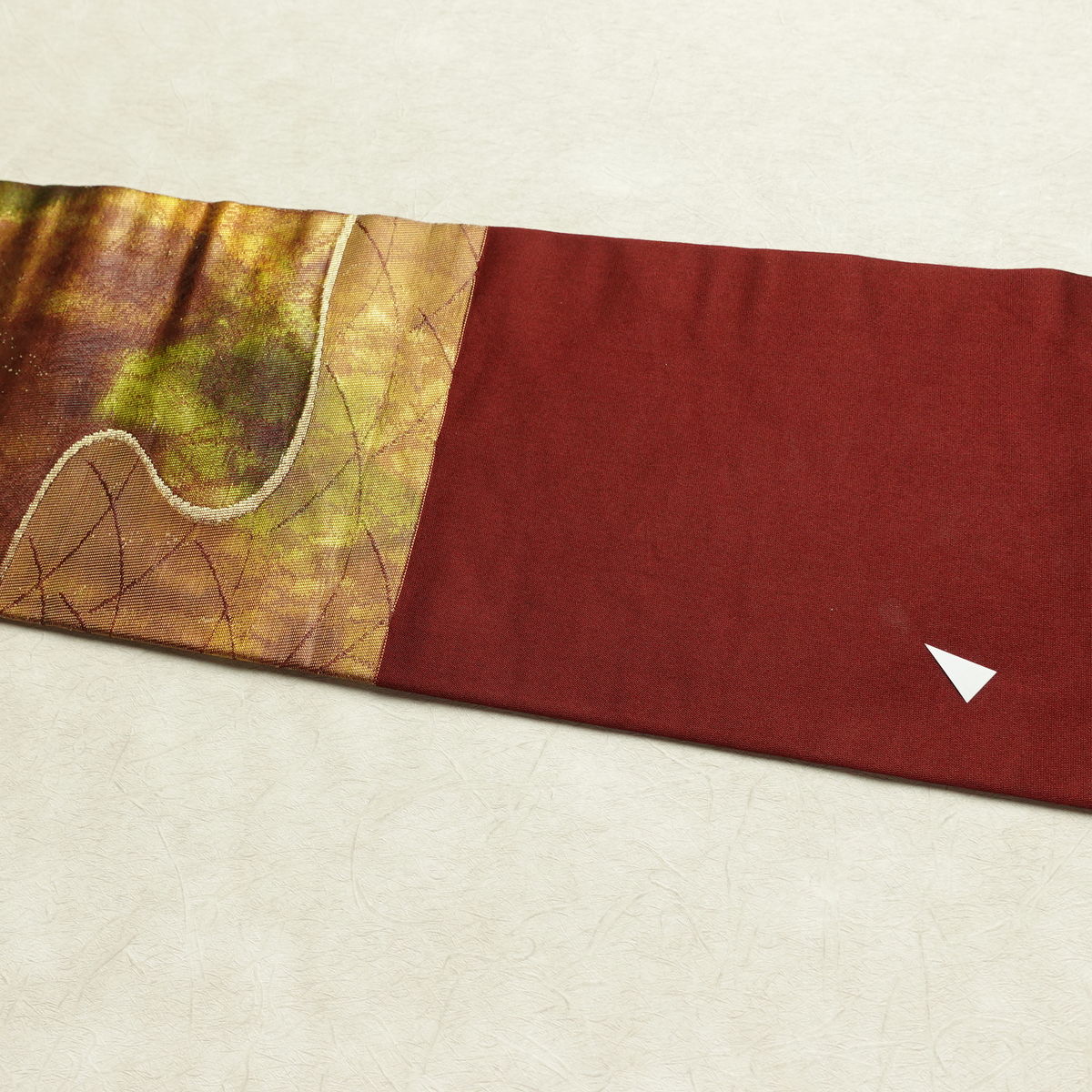 名古屋帯 太鼓柄 正絹 流水・波柄 名古屋仕立て なごや帯 リサイクル帯 帯 箔 小豆・エンジ
