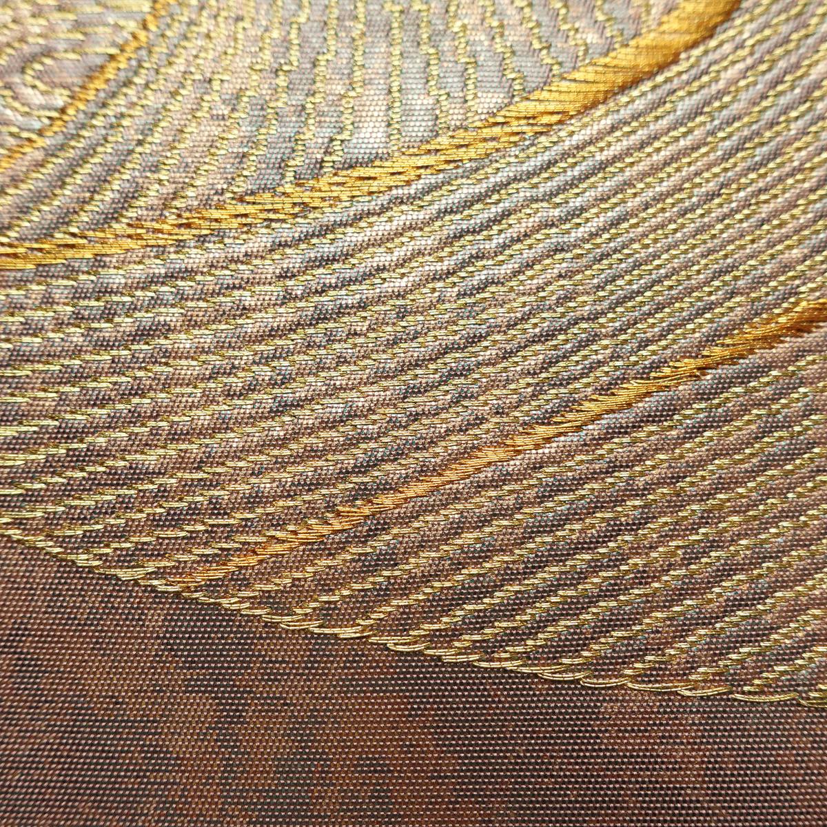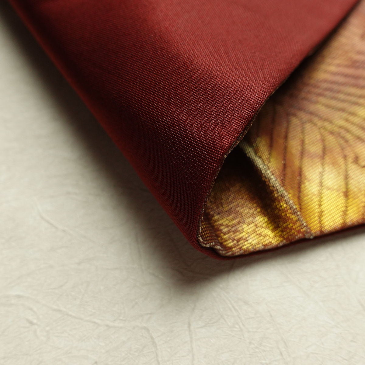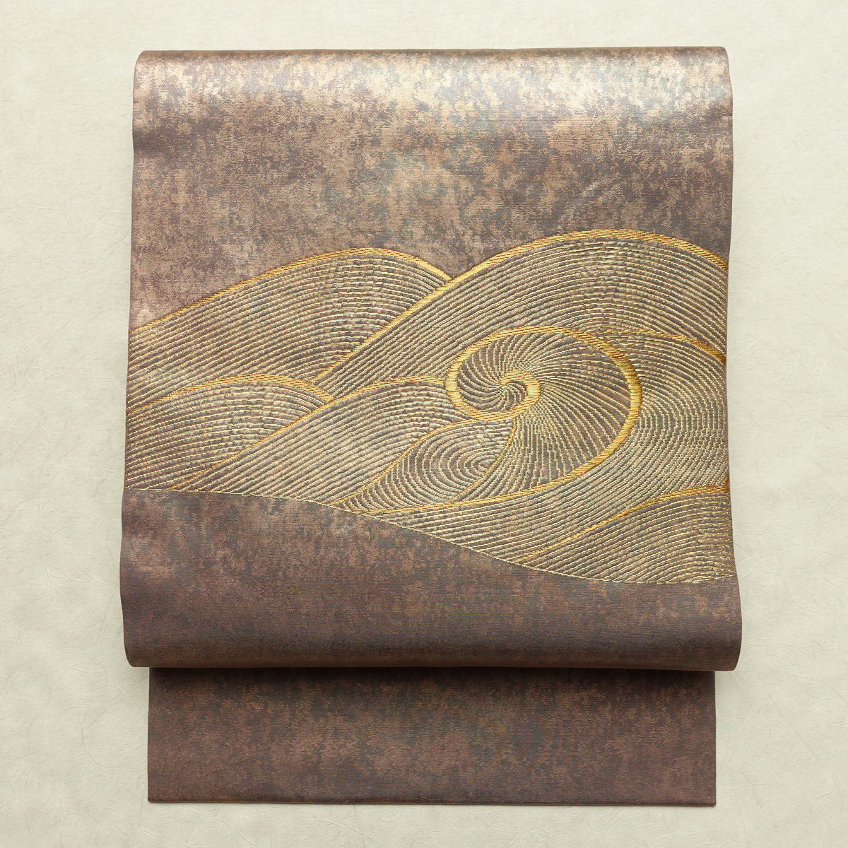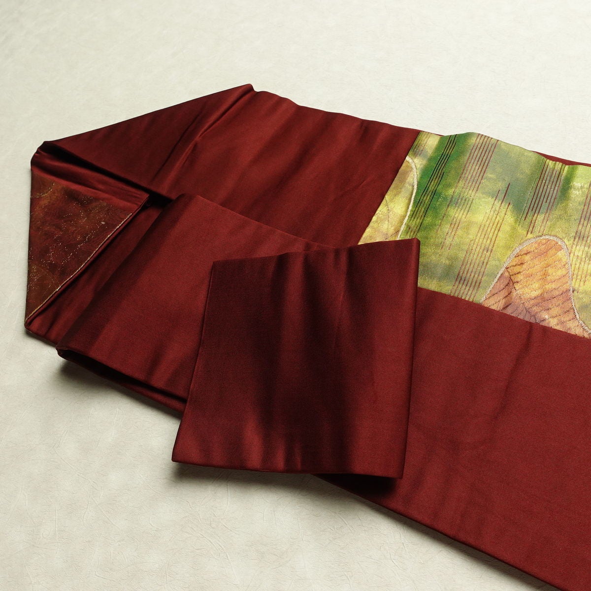 名古屋帯 太鼓柄 正絹 流水・波柄 名古屋仕立て なごや帯 リサイクル帯 帯 箔 小豆・エンジ