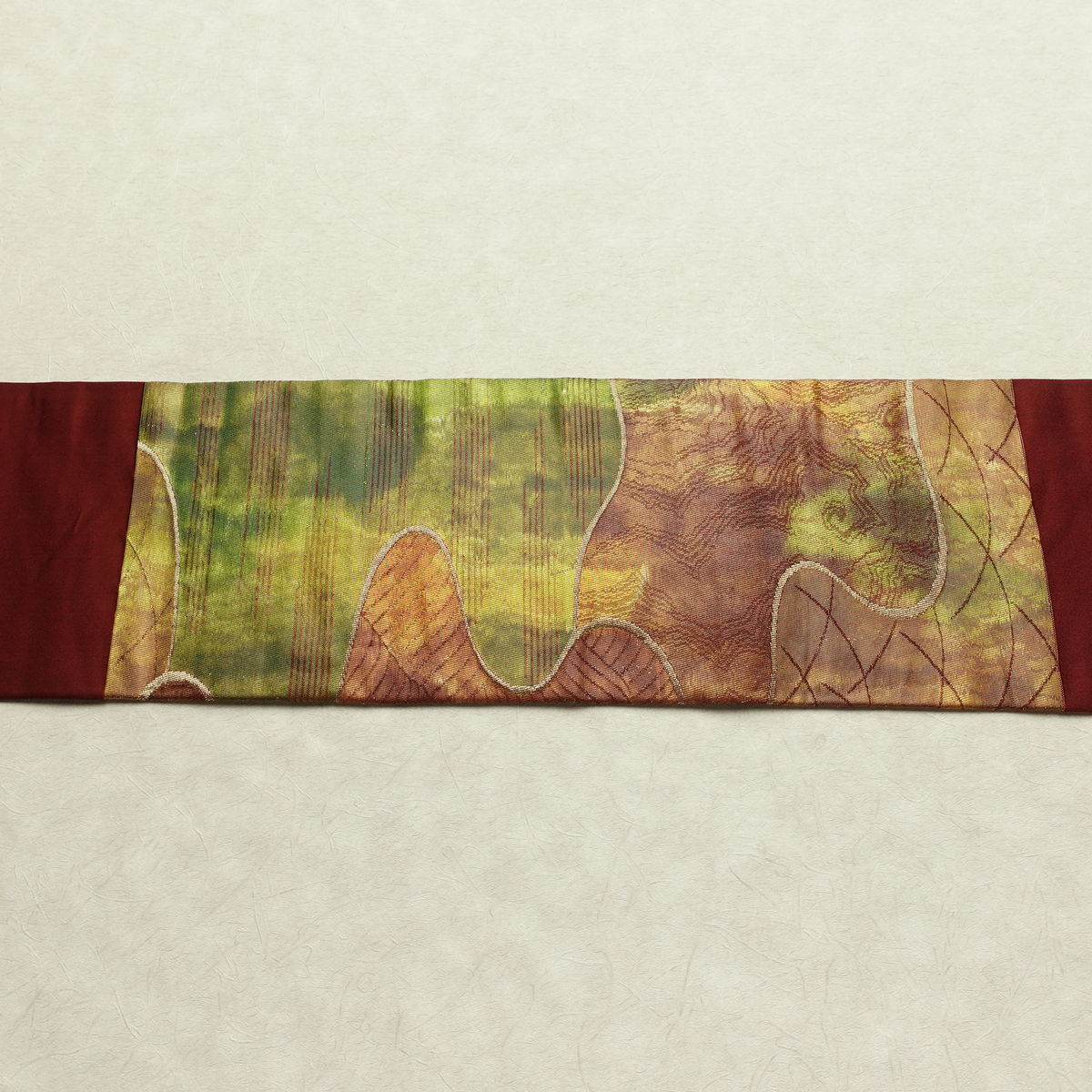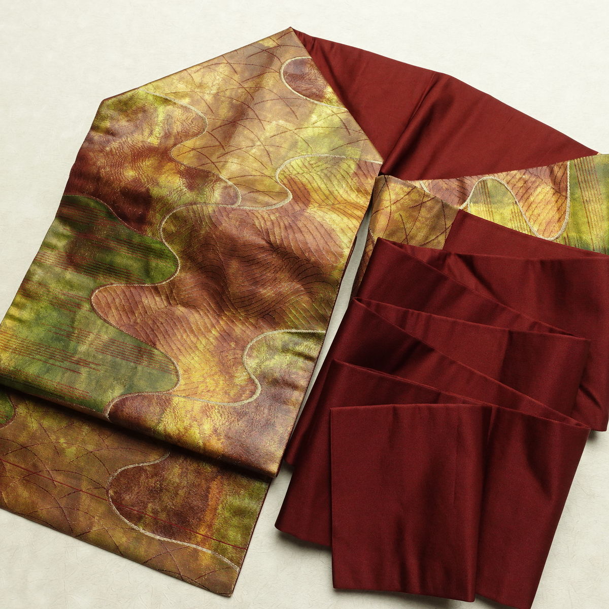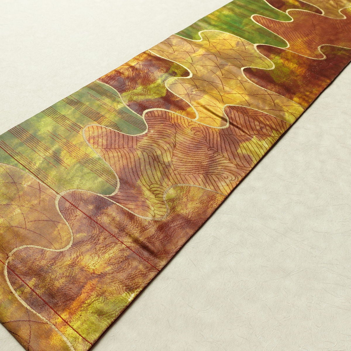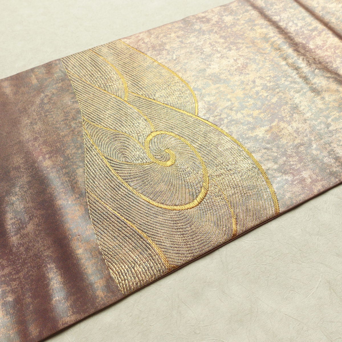名古屋帯 太鼓柄 正絹 流水・波柄 名古屋仕立て なごや帯 リサイクル帯 帯 箔 小豆・エンジ