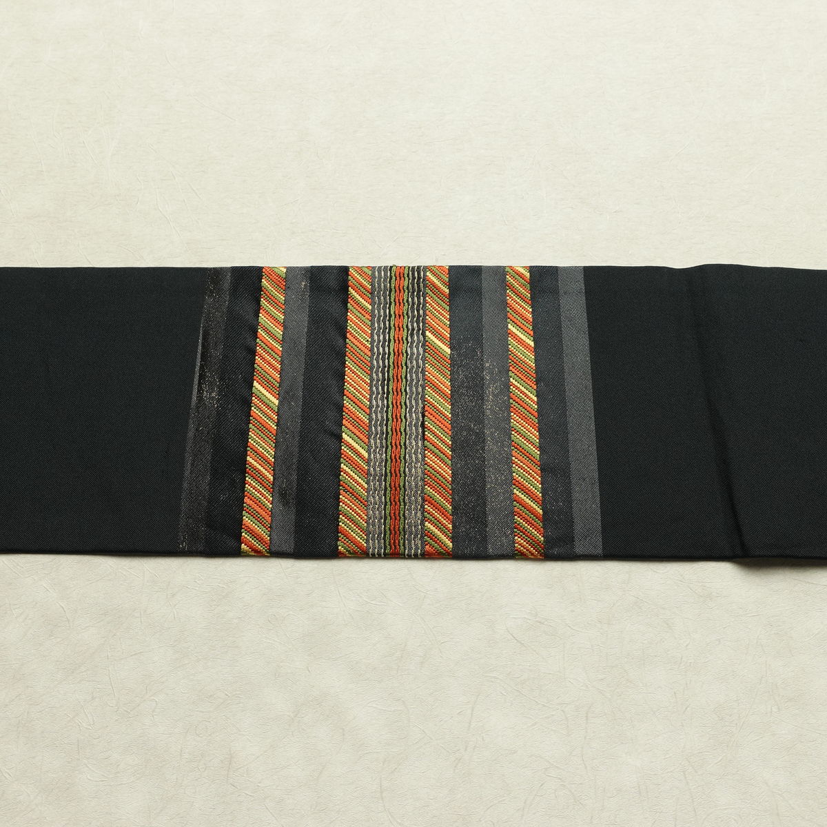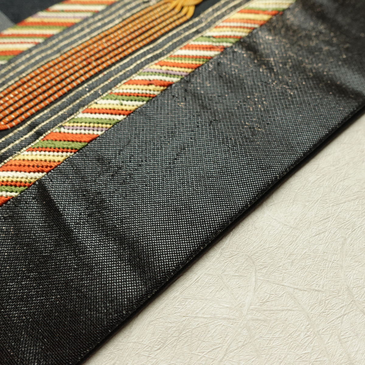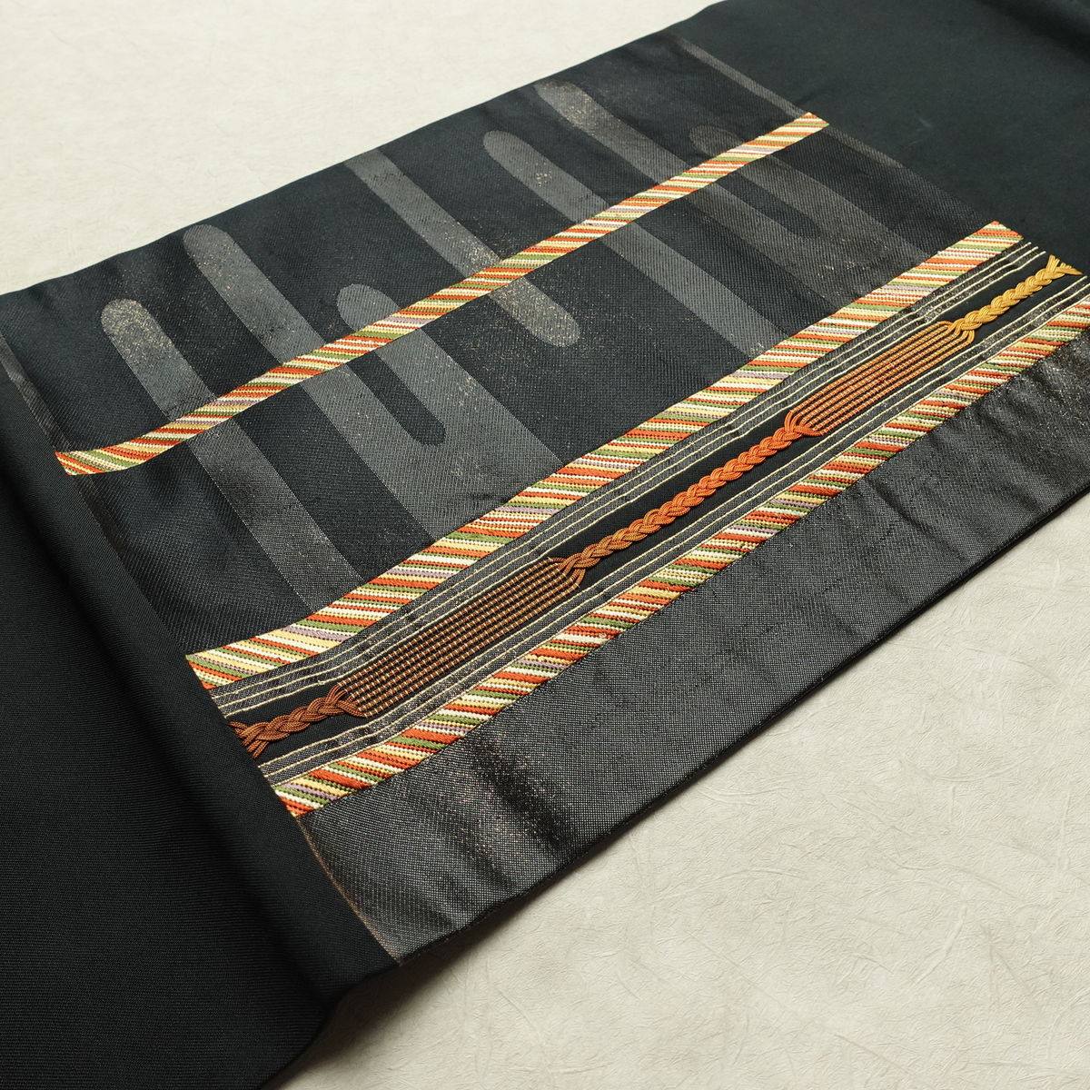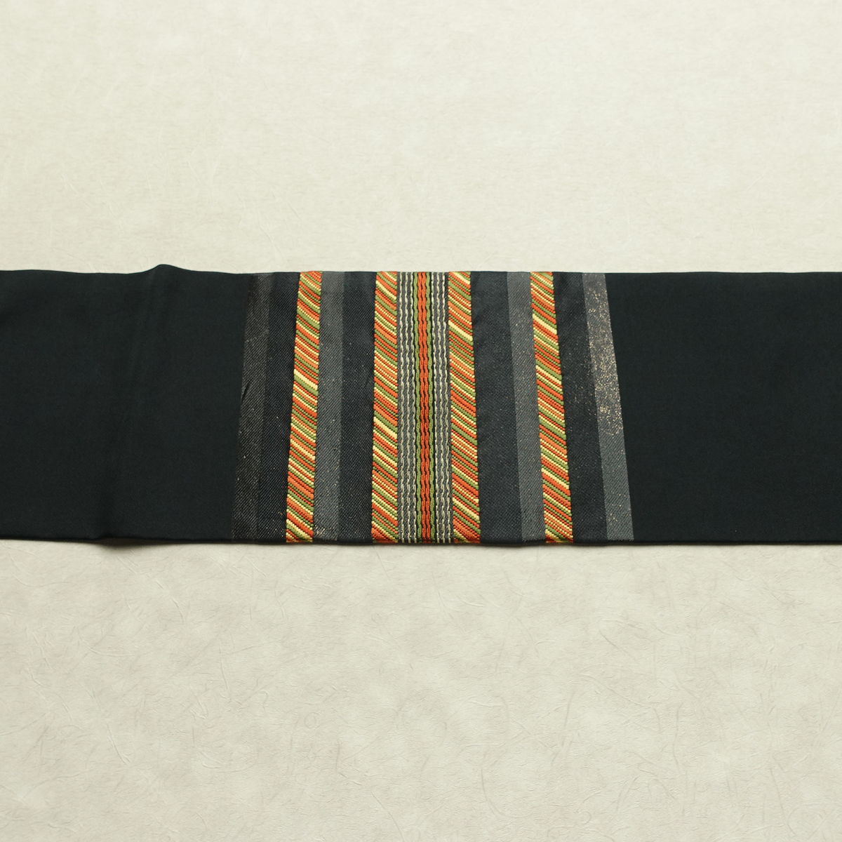 名古屋帯 太鼓柄 正絹 古典柄 名古屋仕立て なごや帯 リサイクル帯 帯 箔 黒