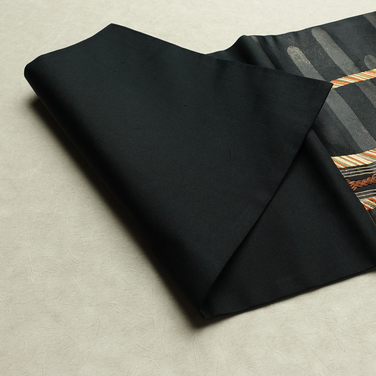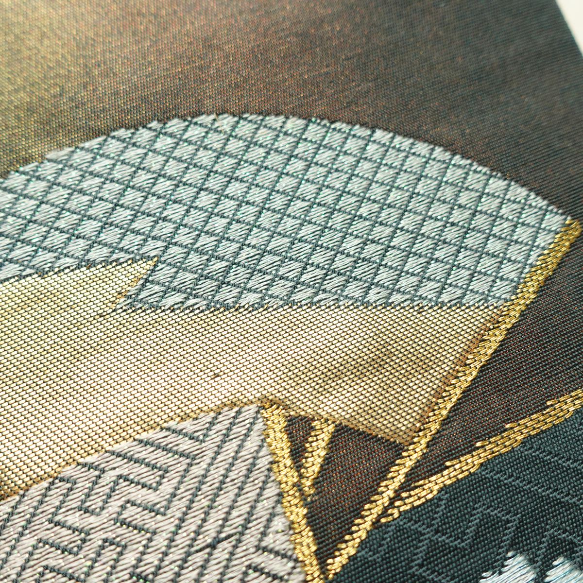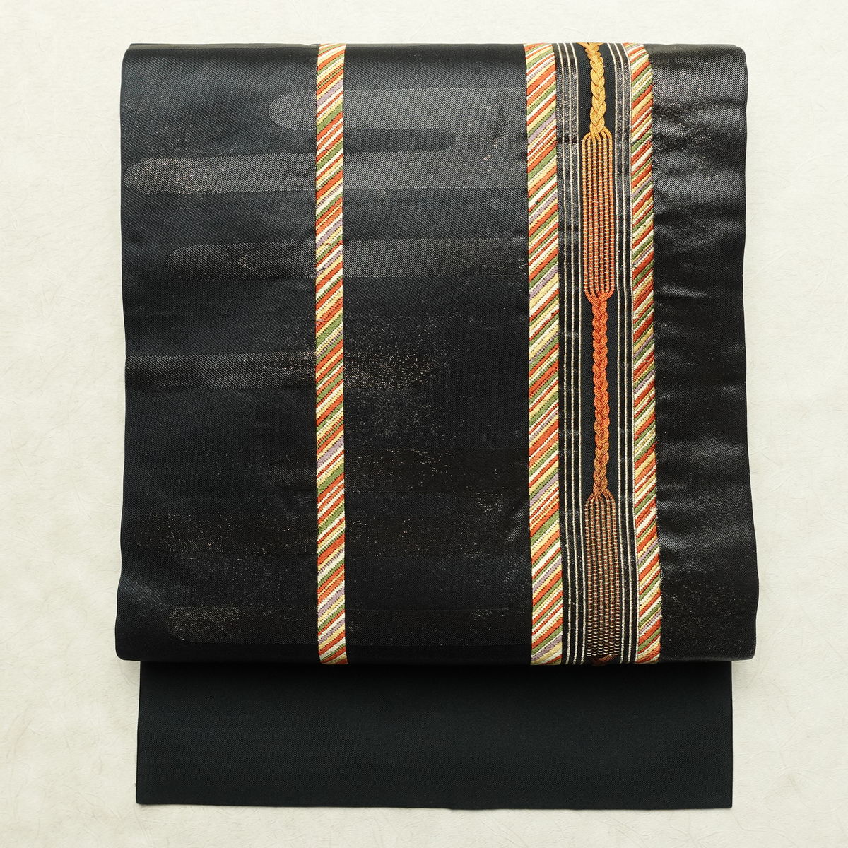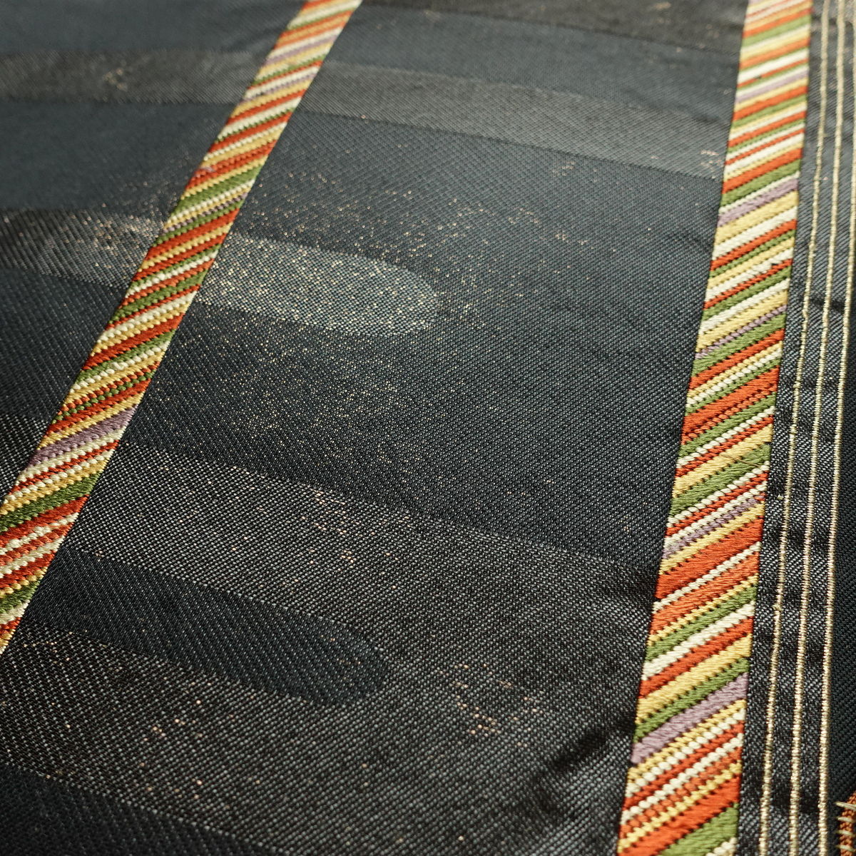 名古屋帯 太鼓柄 正絹 古典柄 名古屋仕立て なごや帯 リサイクル帯 帯 箔 黒