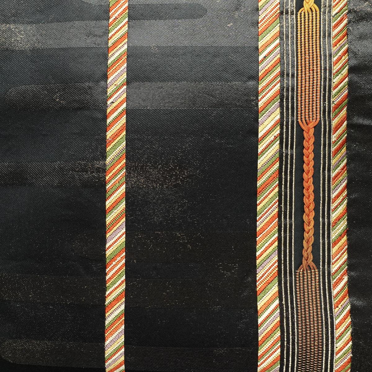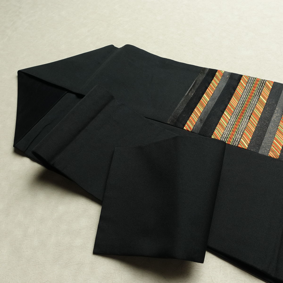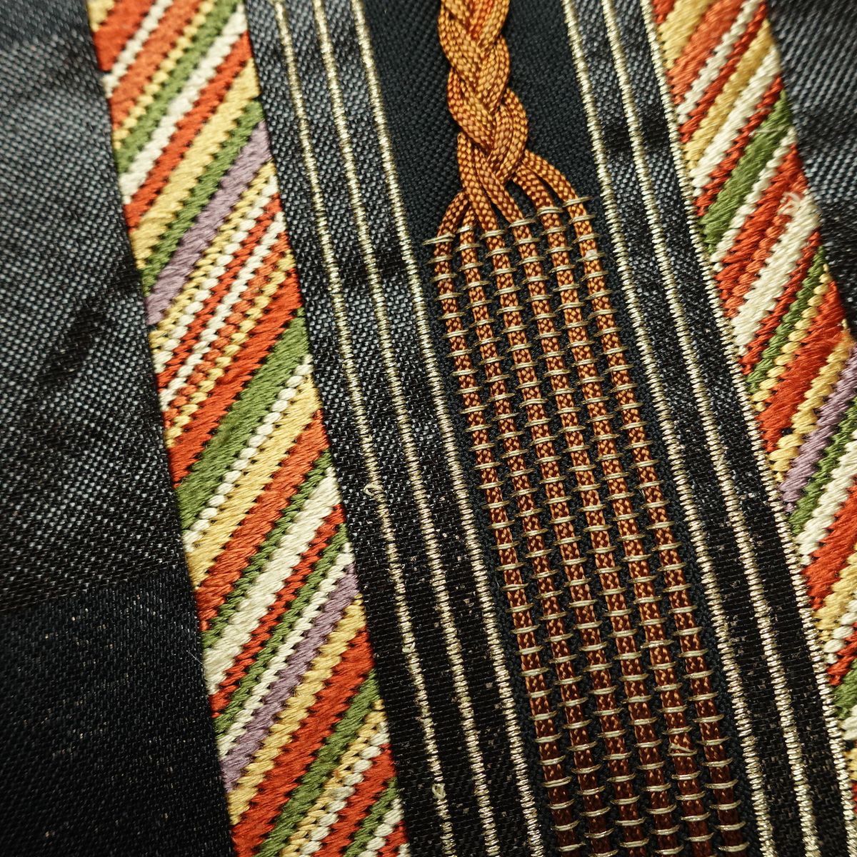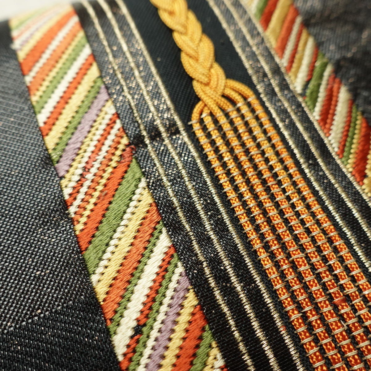 名古屋帯 太鼓柄 正絹 古典柄 名古屋仕立て なごや帯 リサイクル帯 帯 箔 黒