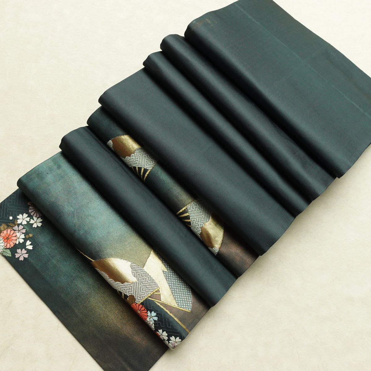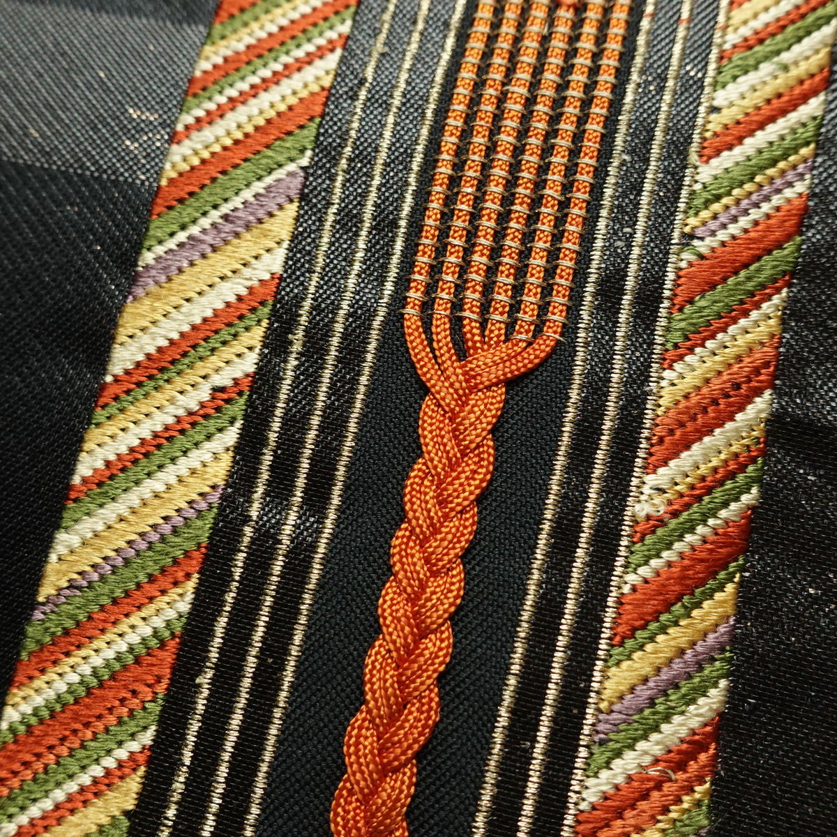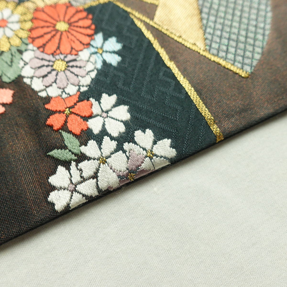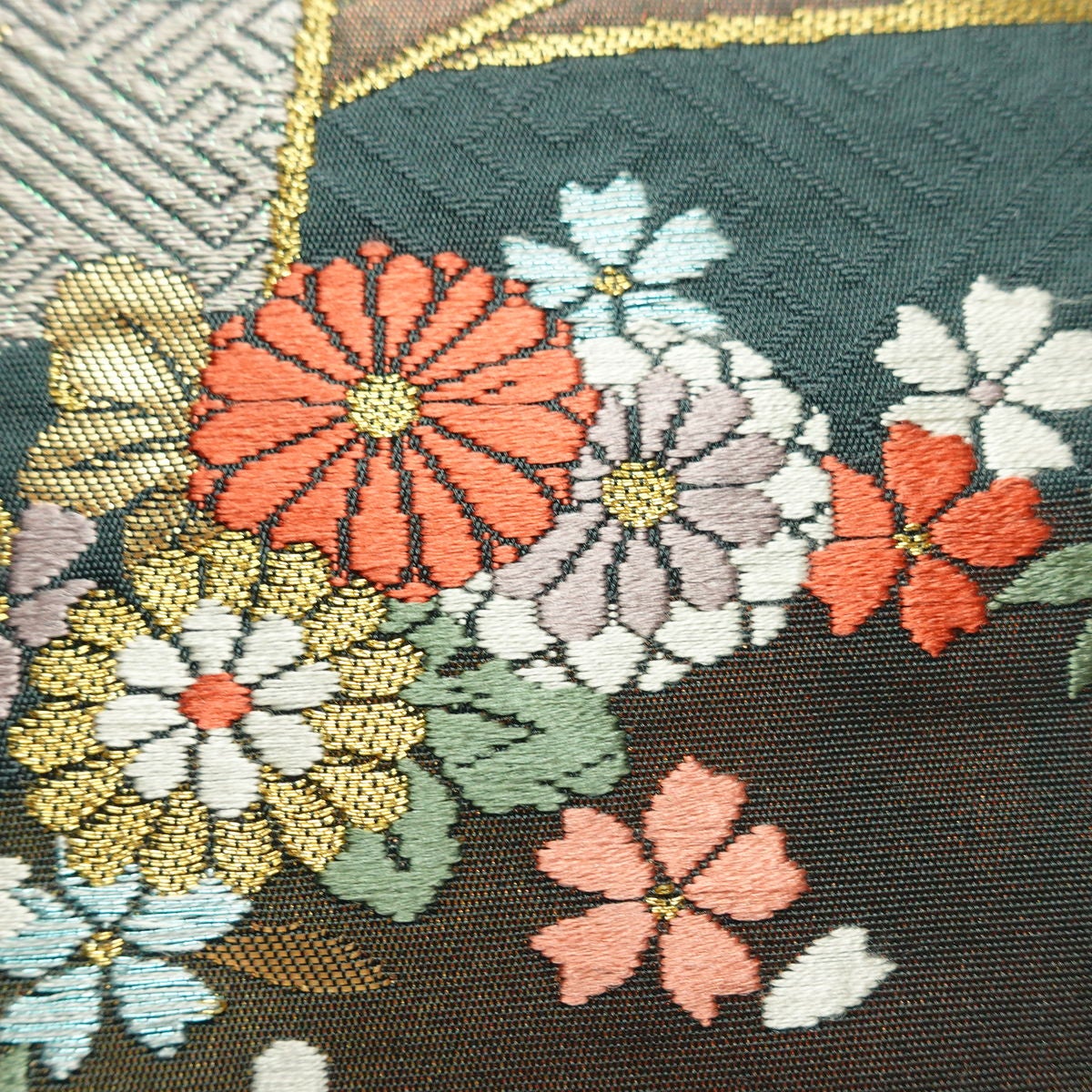 名古屋帯 太鼓柄 正絹 古典柄 名古屋仕立て なごや帯 リサイクル帯 帯 箔 黒