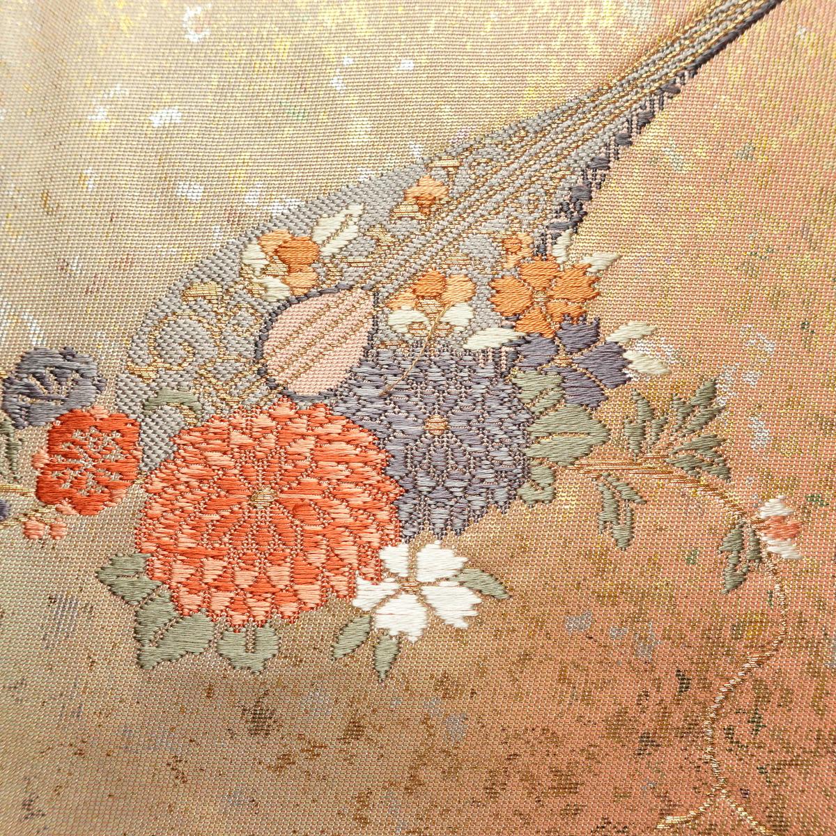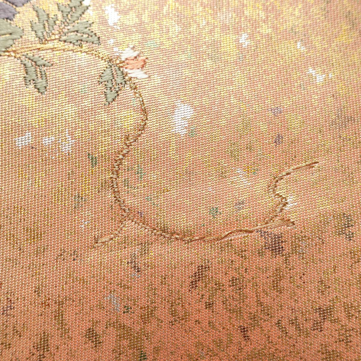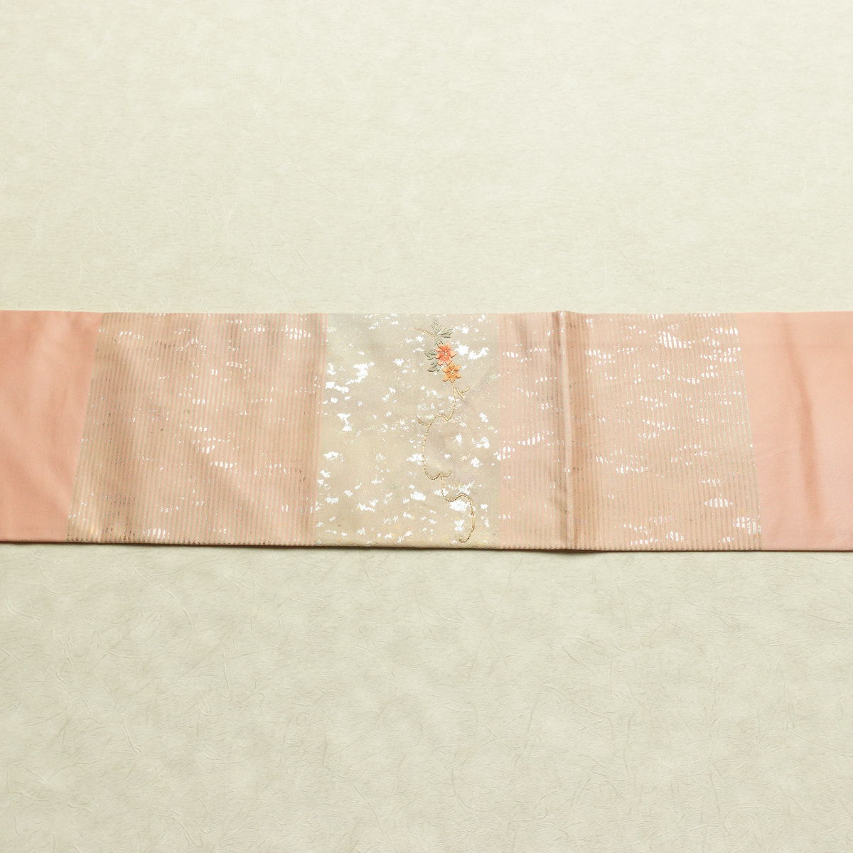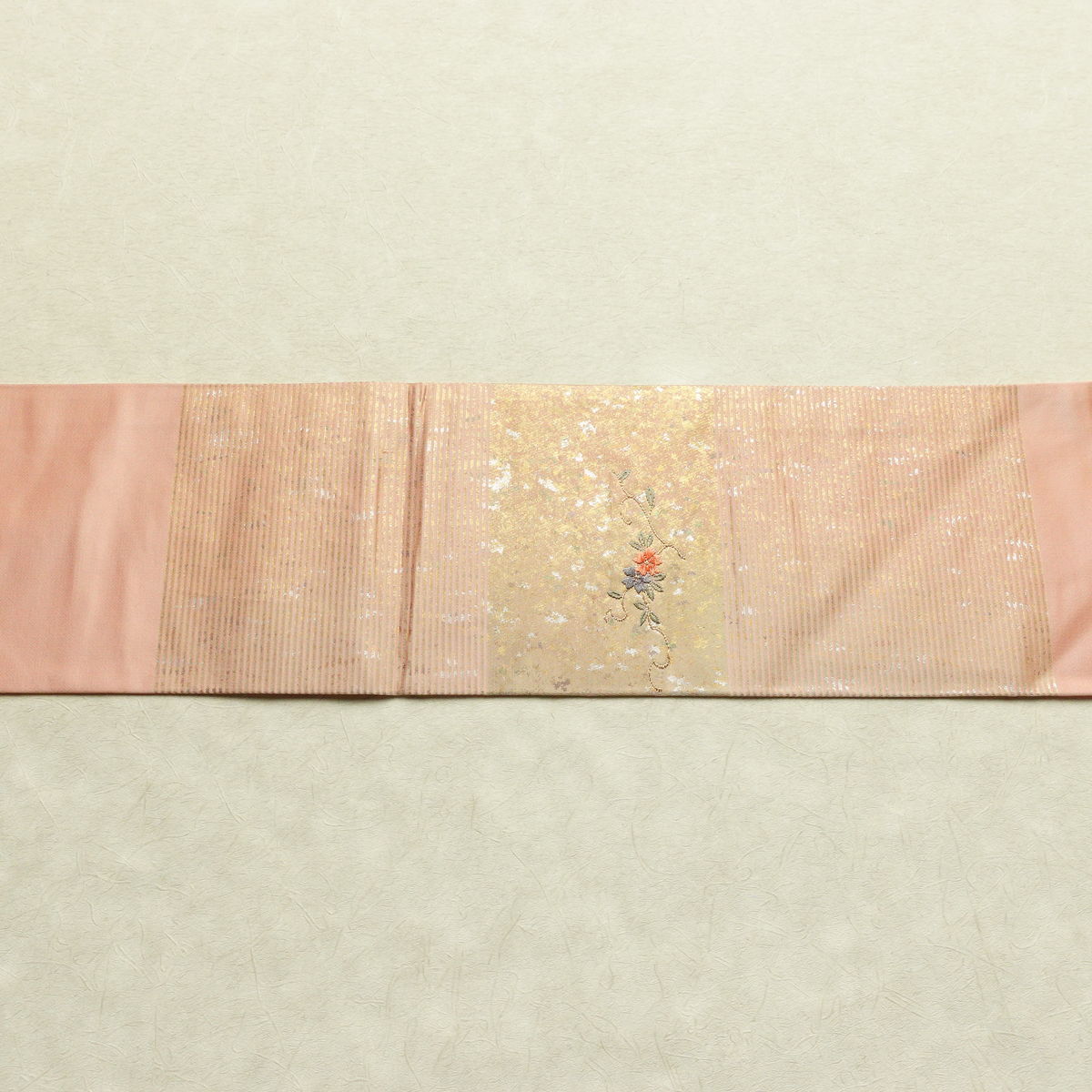 名古屋帯 太鼓柄 美品 正絹 花柄 名古屋仕立て なごや帯 リサイクル帯 帯 箔 菊 ピンク