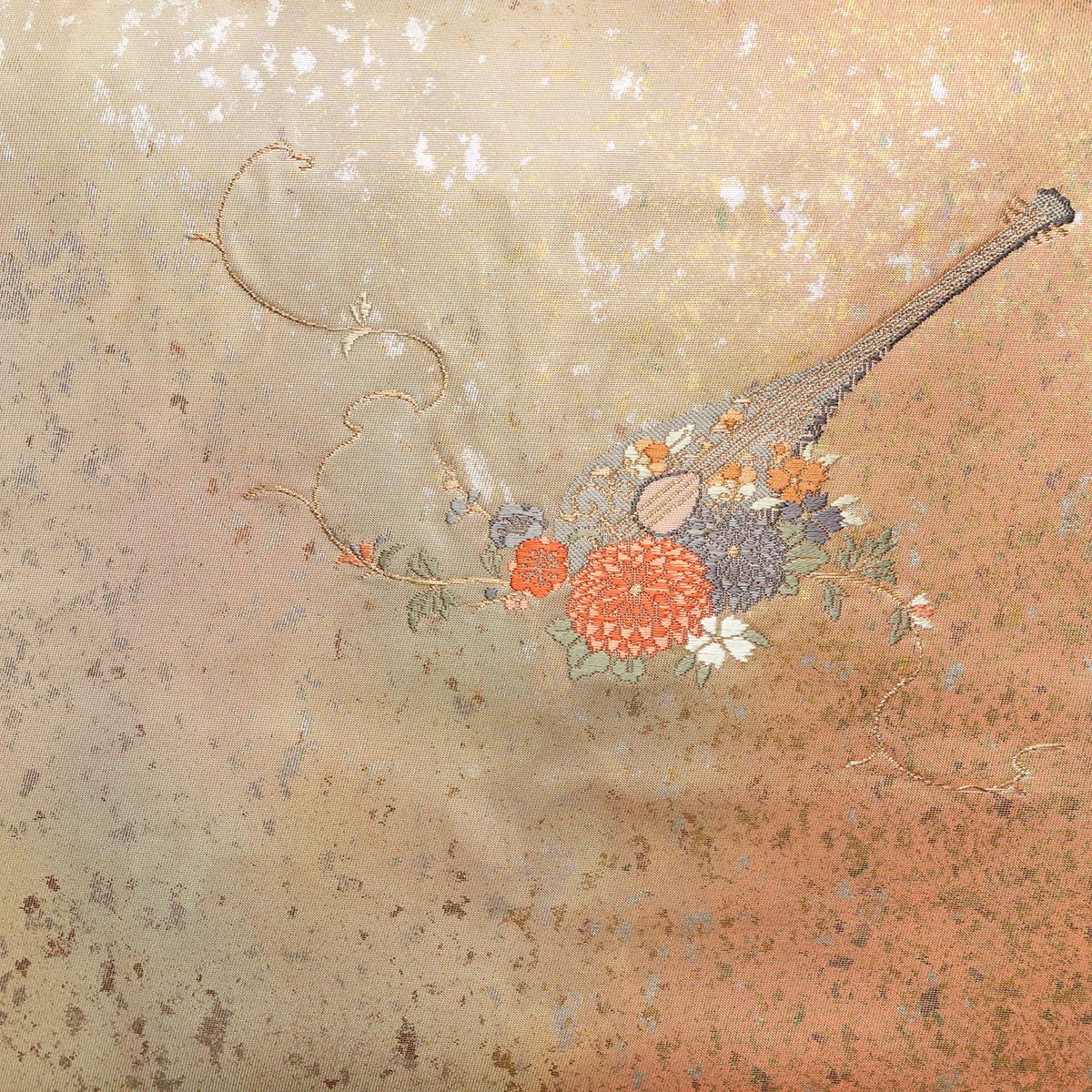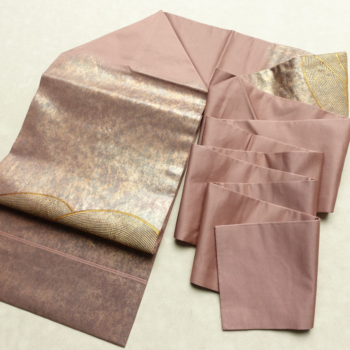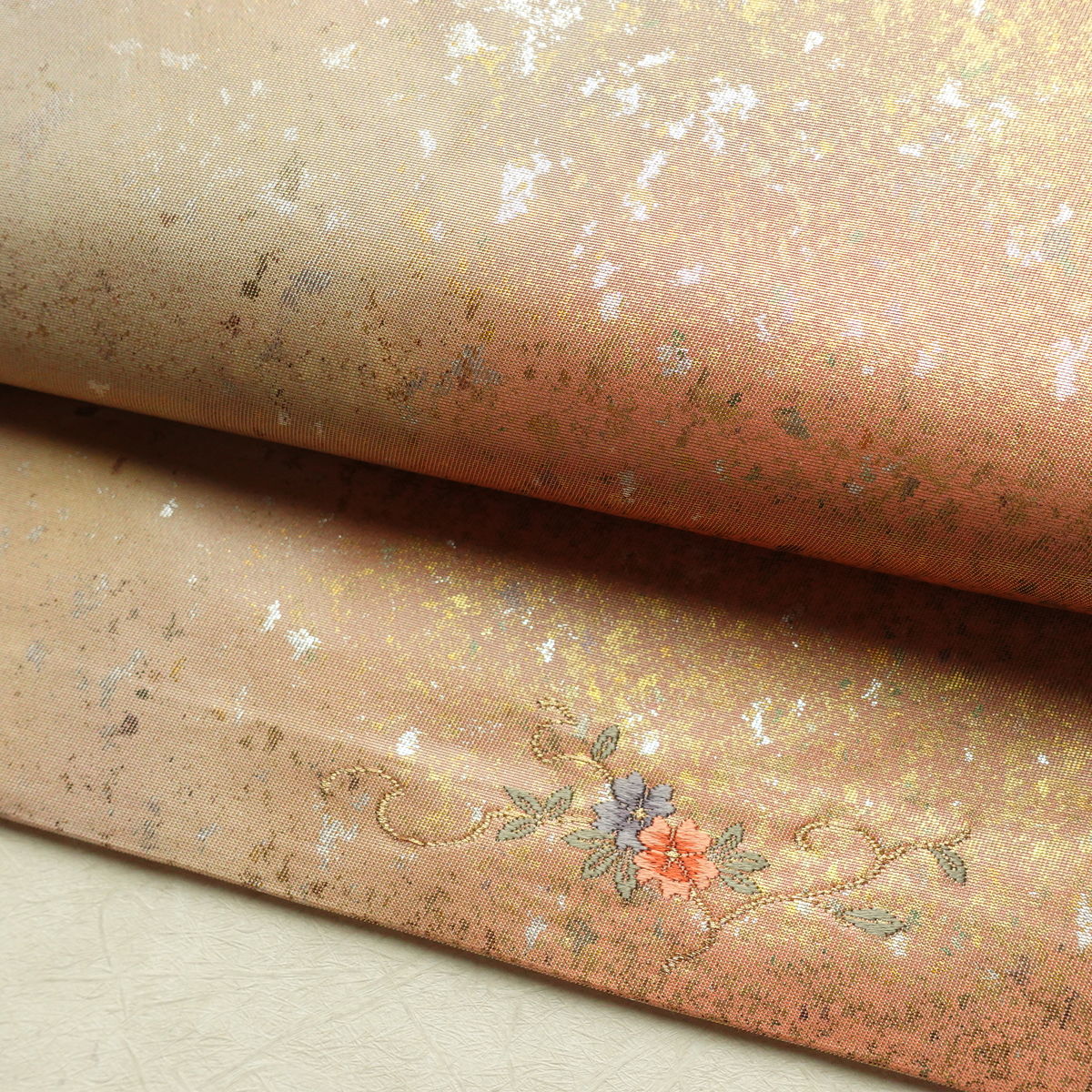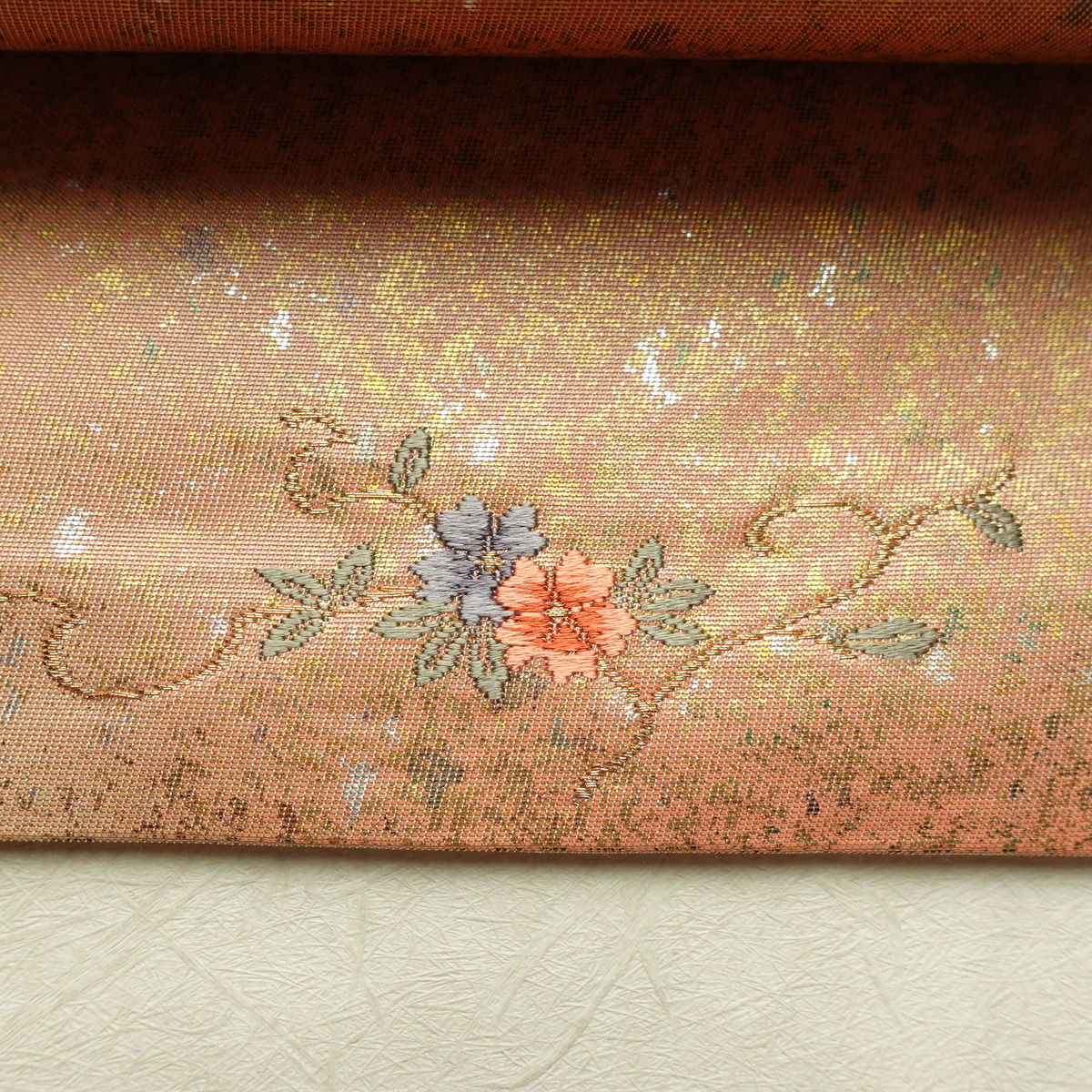 名古屋帯 太鼓柄 美品 正絹 花柄 名古屋仕立て なごや帯 リサイクル帯 帯 箔 菊 ピンク