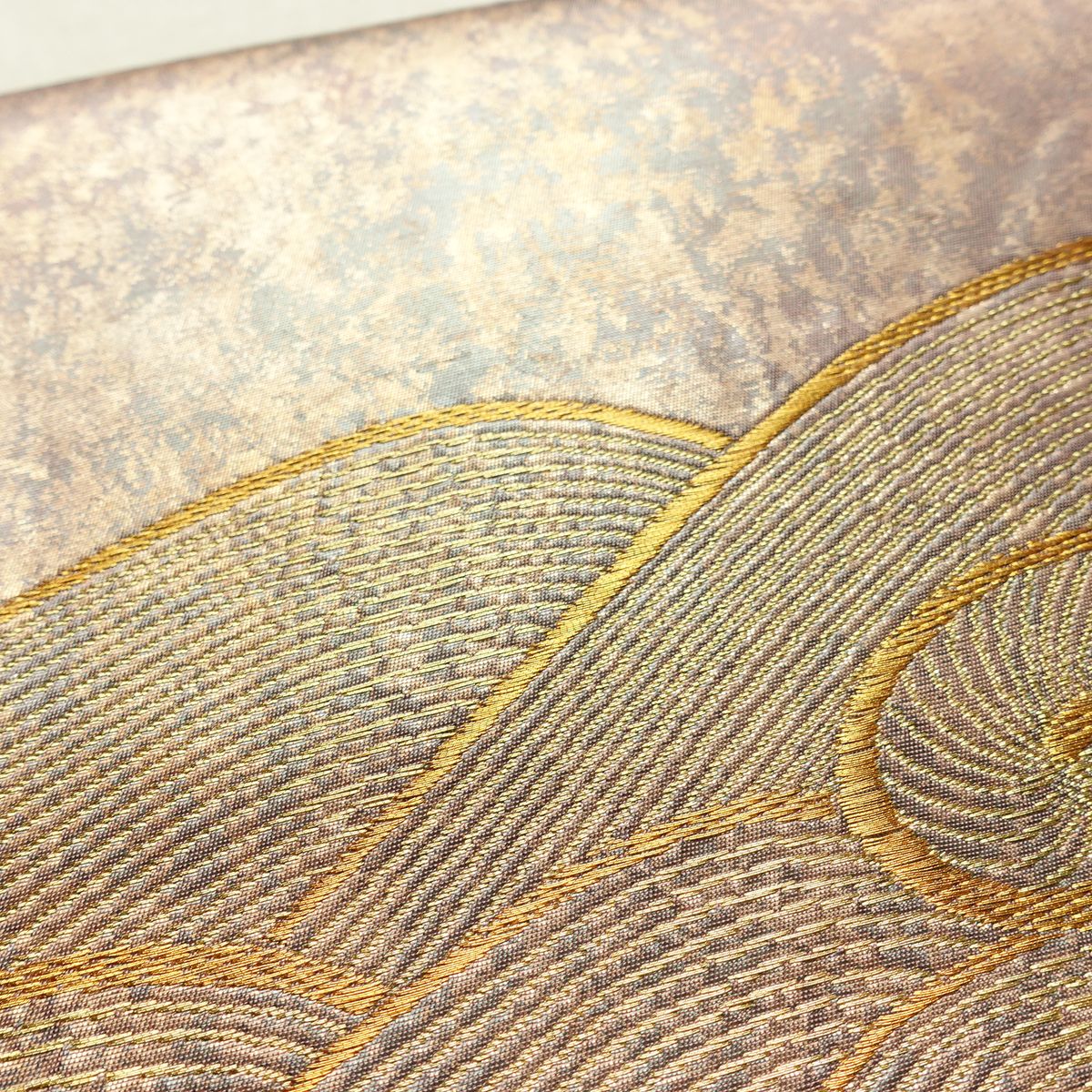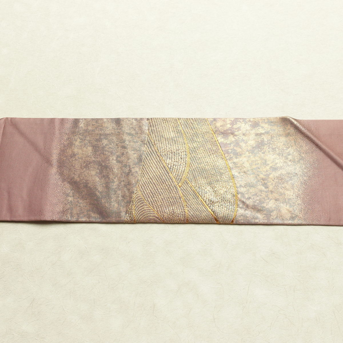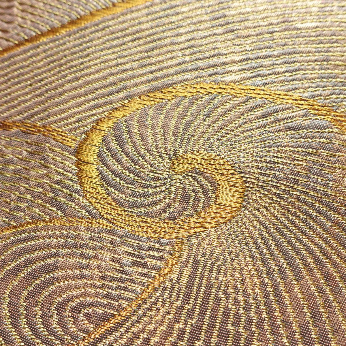 名古屋帯 太鼓柄 良品 正絹 流水・波柄 名古屋仕立て なごや帯 リサイクル帯 帯 箔 紫・藤色
