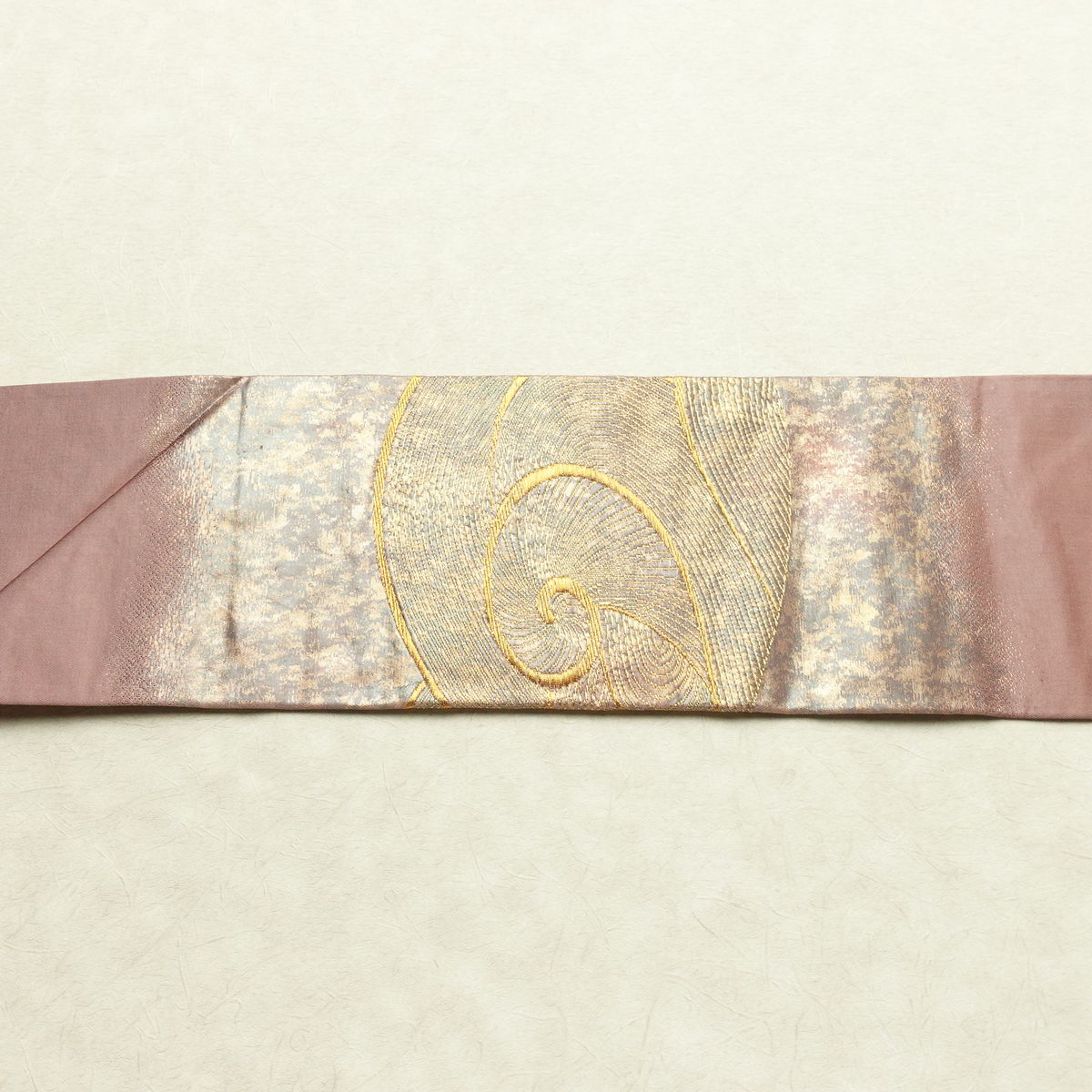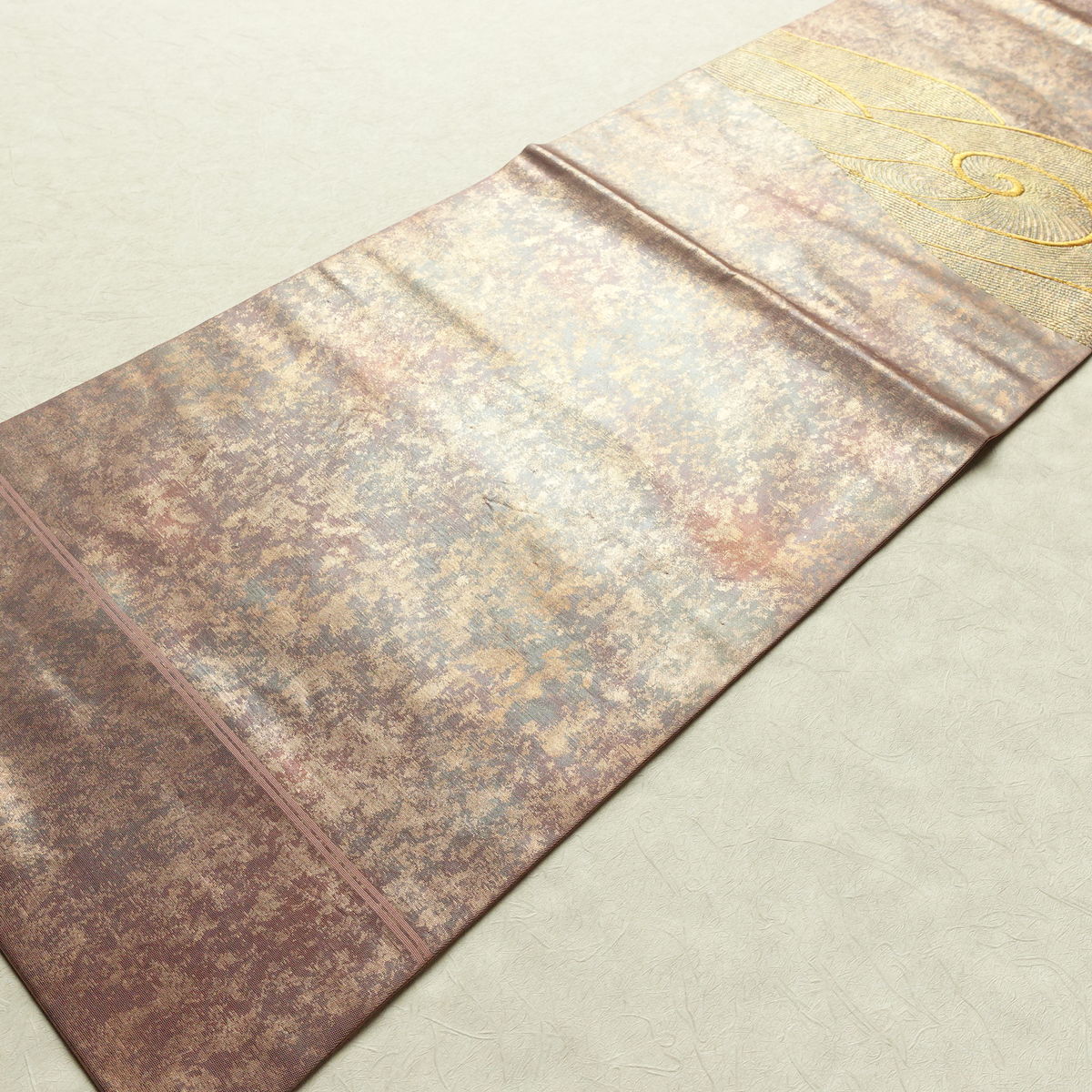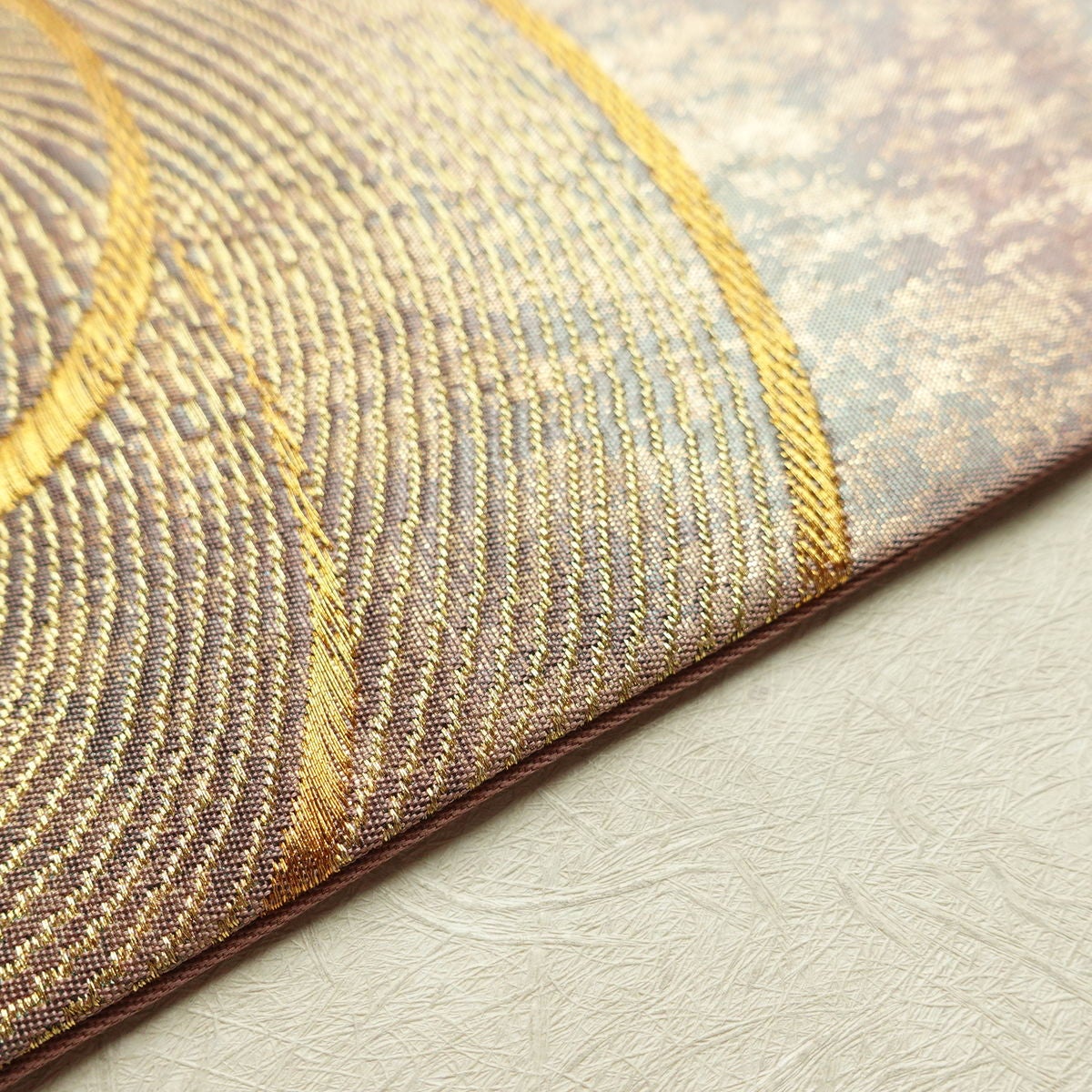 名古屋帯 太鼓柄 良品 正絹 流水・波柄 名古屋仕立て なごや帯 リサイクル帯 帯 箔 紫・藤色