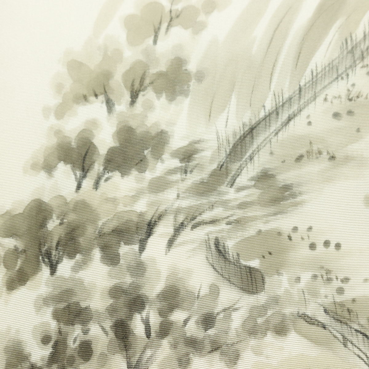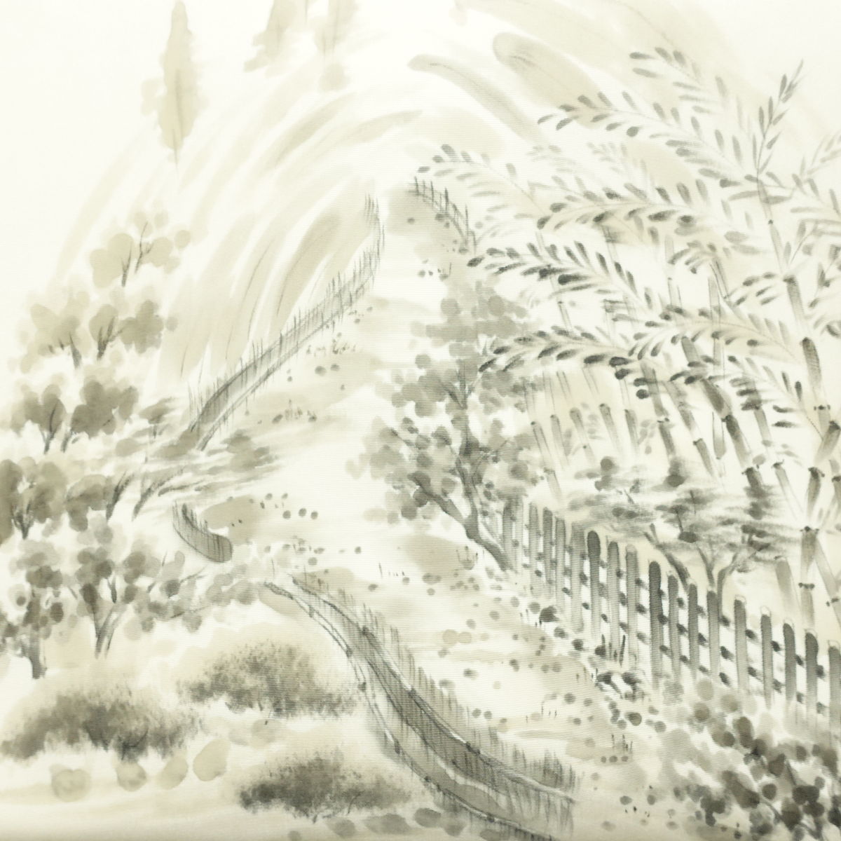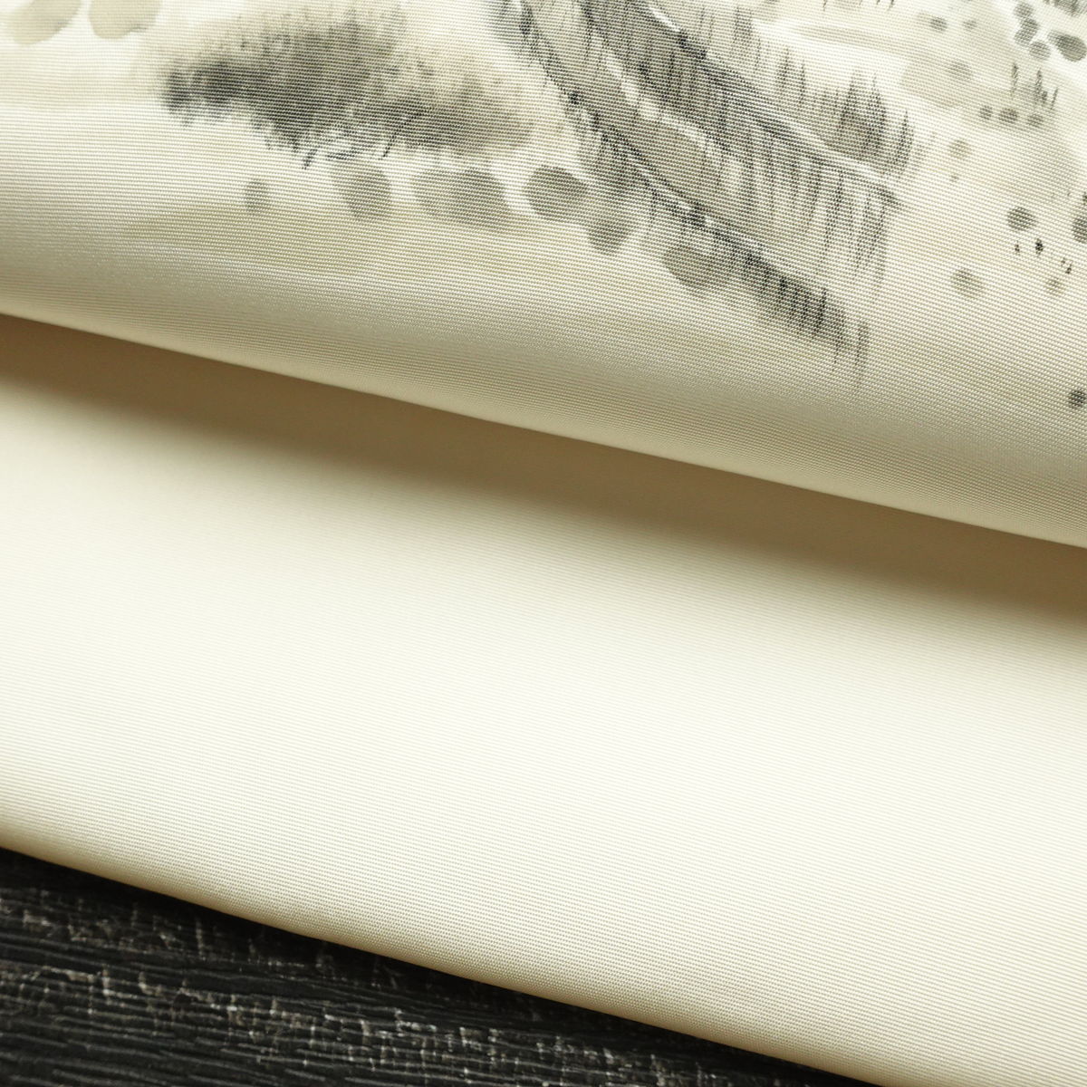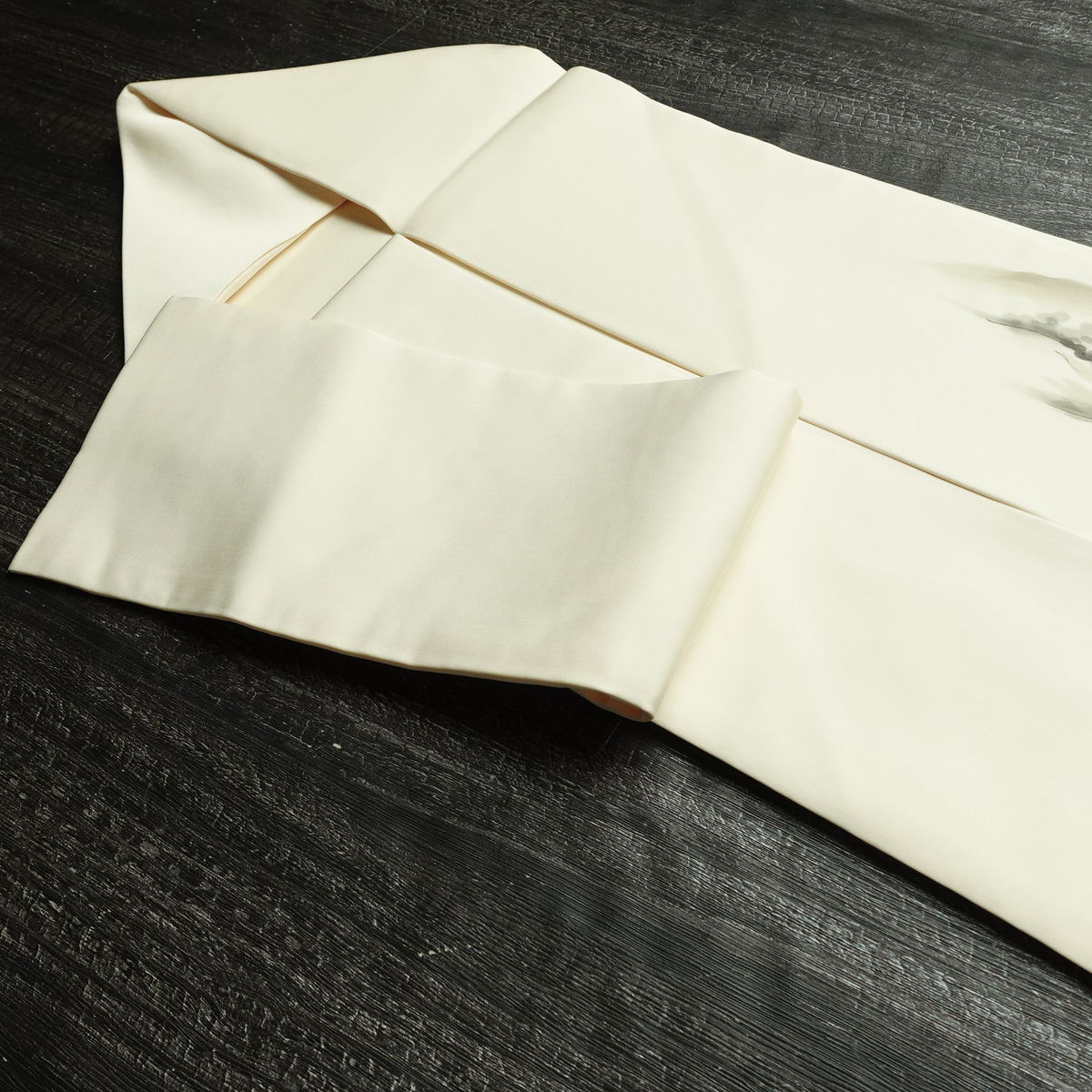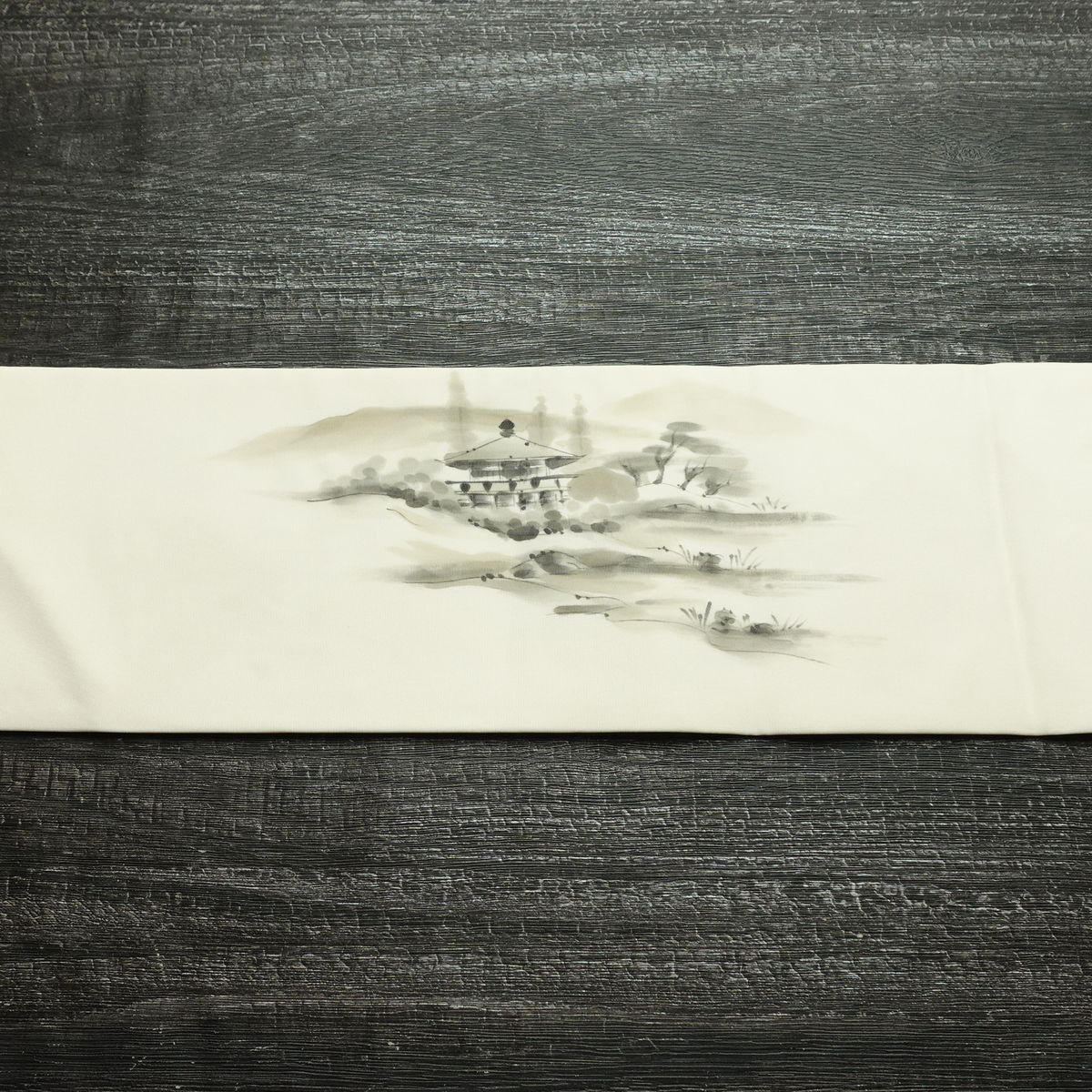 名古屋帯 太鼓柄 良品 落款入り 正絹 風景柄 名古屋仕立て なごや帯 リサイクル帯 帯 白