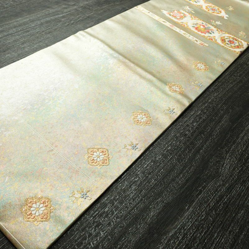他の画像を見る 0 名古屋帯 太鼓柄 良品 しつけ糸付き 正絹 花柄 名古屋仕立て なごや帯 リサイクル帯 帯 箔 シンプル 緑・うぐいす色 ¥ 10,800 税込 カートに入れる お気に入りに登録する